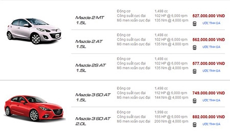 28/02/2015 17:00Bảng giá xe Mazda chính hãng ở Việt Nam