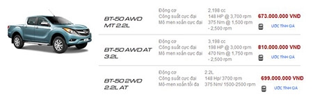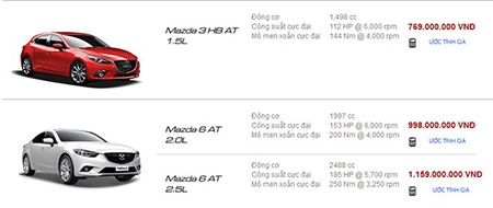 Bảng giá chi tiết các mẫu xe Mazda ở Việt Nam: