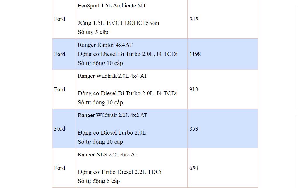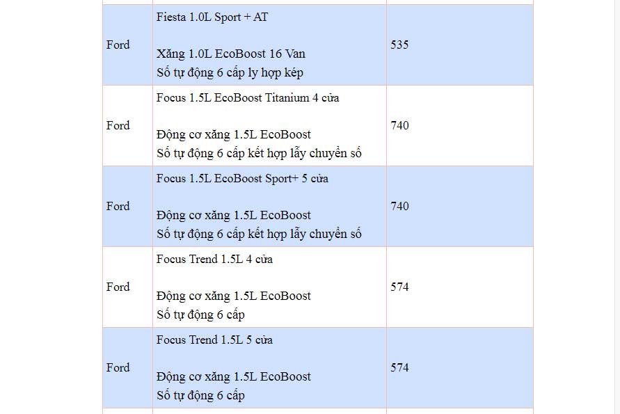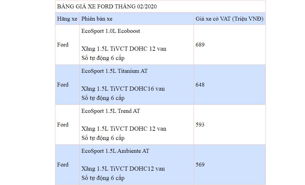 03/02/2020 15:55Bảng giá xe ô tô Ford tháng 2/2020: Nhận ưu đãi đến hàng chục triệu đồng