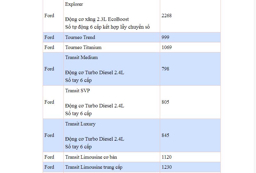 Bảng giá tham khảo xe ô tô Ford tháng 2/2020: