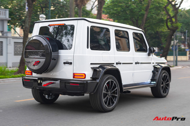 Nguyên bản, chiếc G350 d này có bộ cản trước và sau trông hiền hơn đáng kể so với phiên bản G 63 đang "làm mưa làm gió" thị trường trong nước. Có lẽ vì thế chủ nhân chiếc SUV này đã nâng cấp bộ bodykit của Brabus nhằm mang tới diện mạo thể thao hơn. Theo một số trang nước ngoài, một bộ bodykit có tên Widestar cho mẫu G-Class có giá bán lên tới 28.000 USD, tương đương hơn 650 triệu đồng.