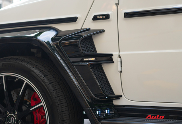 Gói độ Brabus này còn cung cấp cho chiếc xe phần vòm bánh được nới rộng hơn so với nguyên bản, bổ sung thêm các hốc hút gió giả làm tăng vẻ thẩm mỹ của chiếc SUV. Ốp bánh xe bọc da đã thay thế bằng loại làm carbon với dòng chữ Brabus dập nổi.