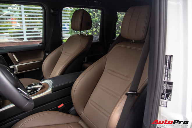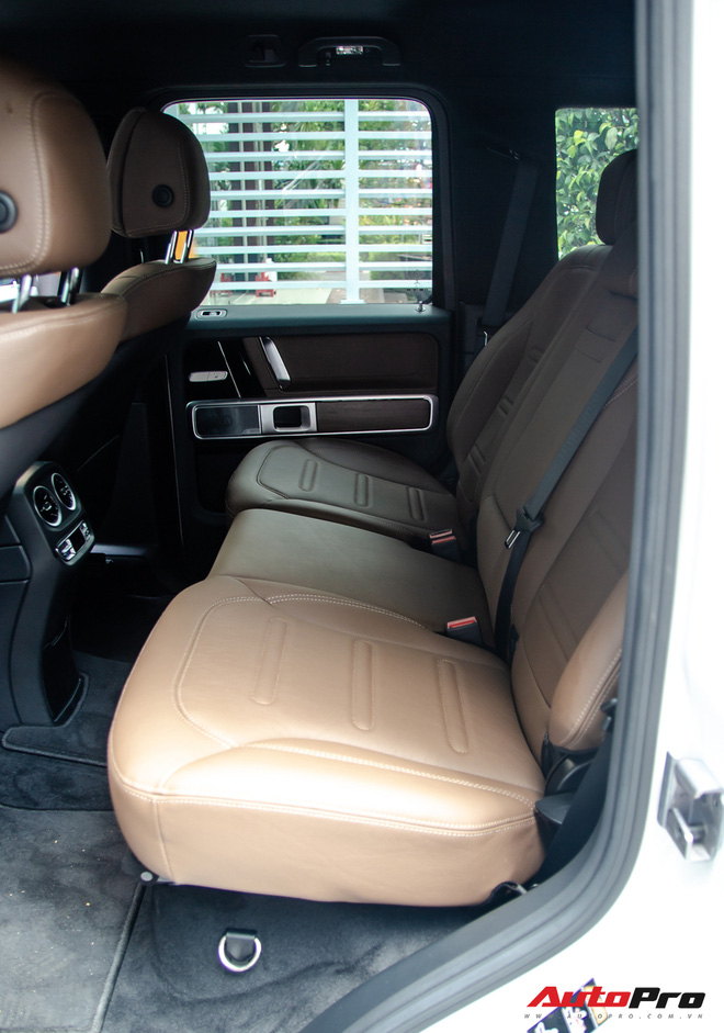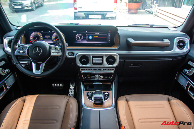 Nội thất của chiếc xe này được bọc da màu nâu cho ghế ngồi trong khi các chi tiết còn lại là tối màu. Cụm điều khiển trung tâm, tay vịn và viền màn hình tốc độ được ốp gỗ cao cấp màu nâu. Chiếc xe vẫn có các trang bị cao cấp như 2 màn hình kép kích thước 12,3 inch, cửa sổ trời, đèn viền nội thất và hệ thống âm thanh Burmester. Vô-lăng ba chấu loại tiêu chuẩn thay vì là AMG như trên G 63, tích hợp các phím hỗ trợ người lái và lẫy chuyển số, ghế ngồi trên xe được trang bị chức năng nhớ vị trí và làm mát.