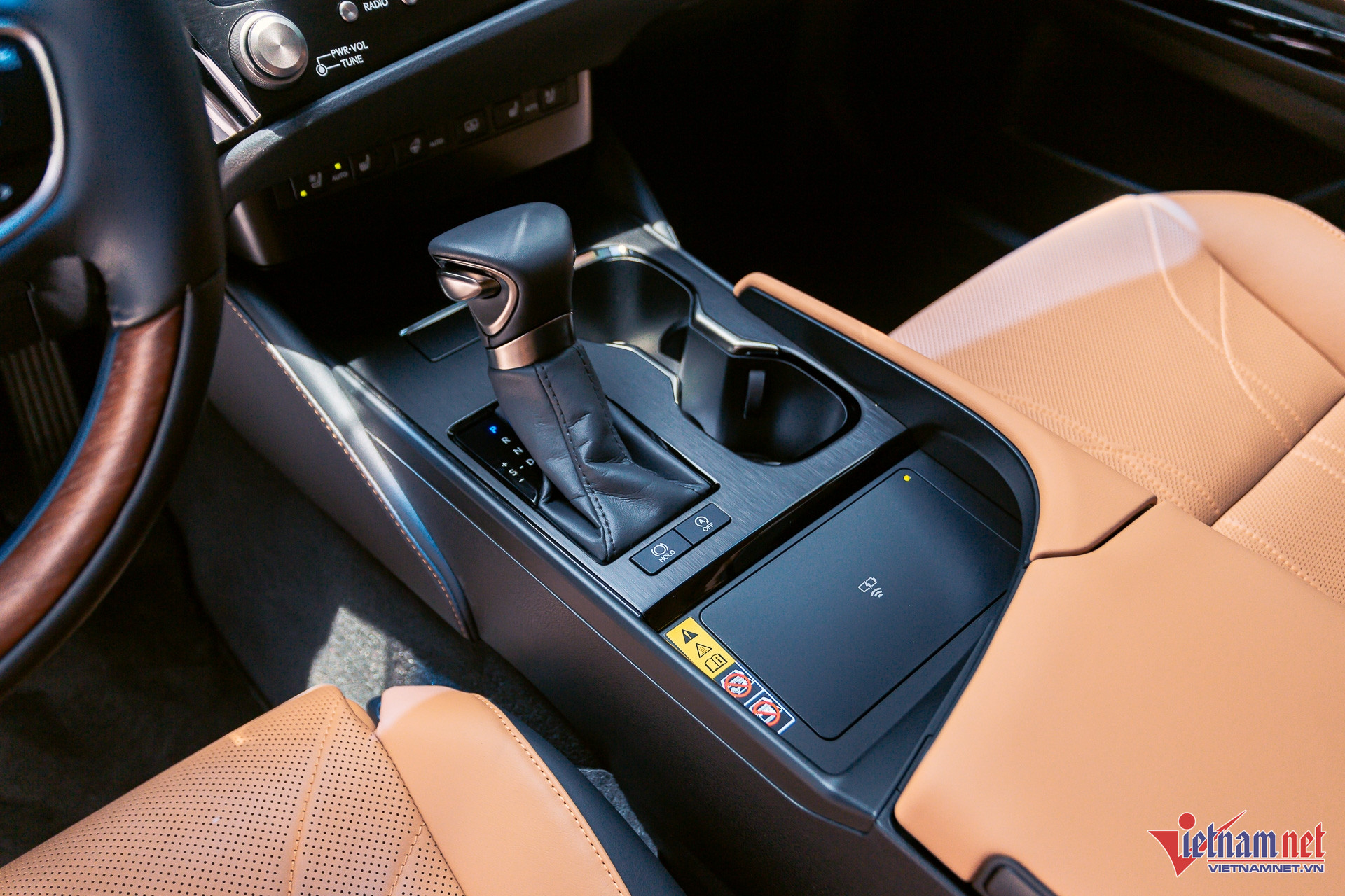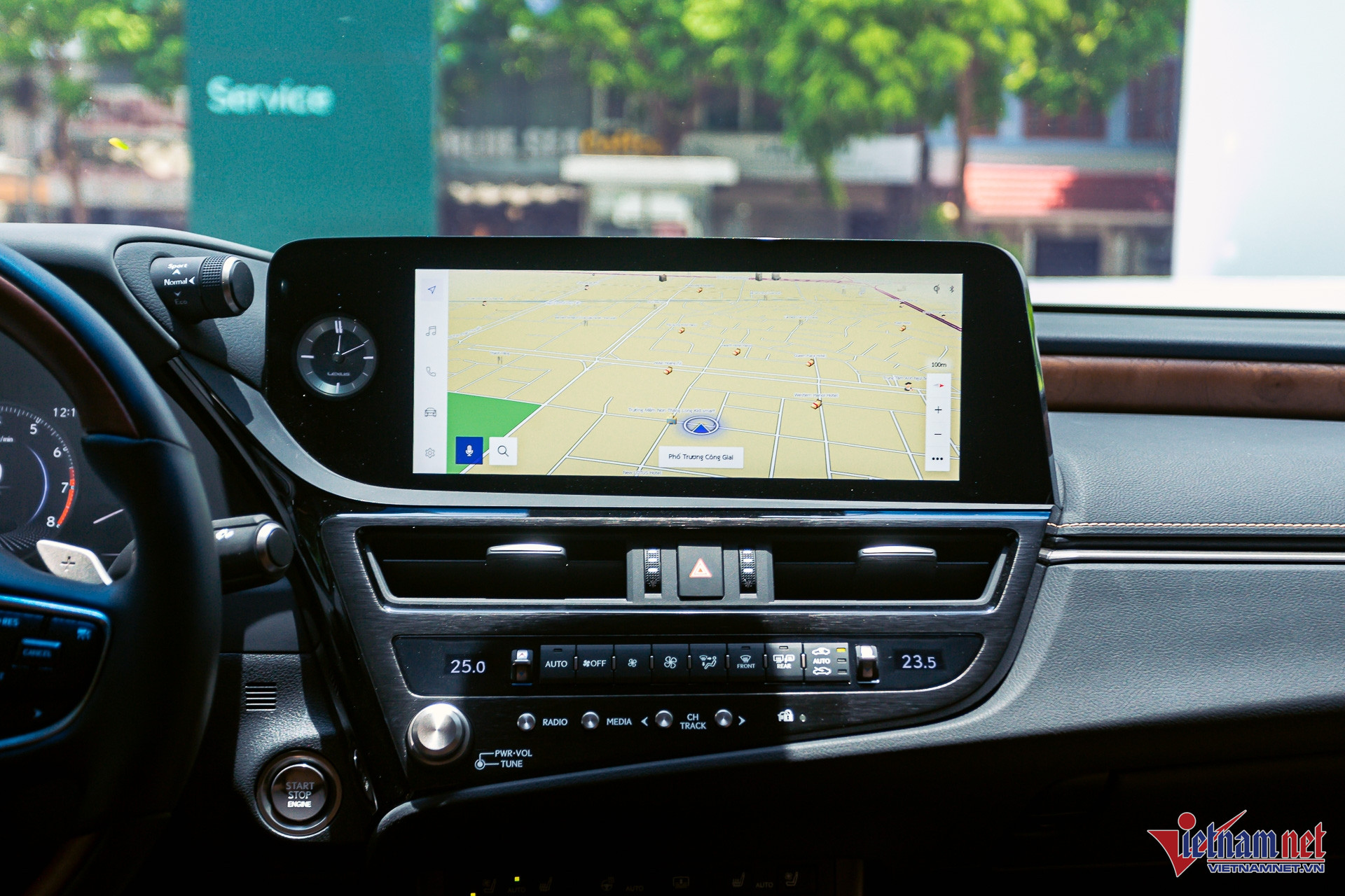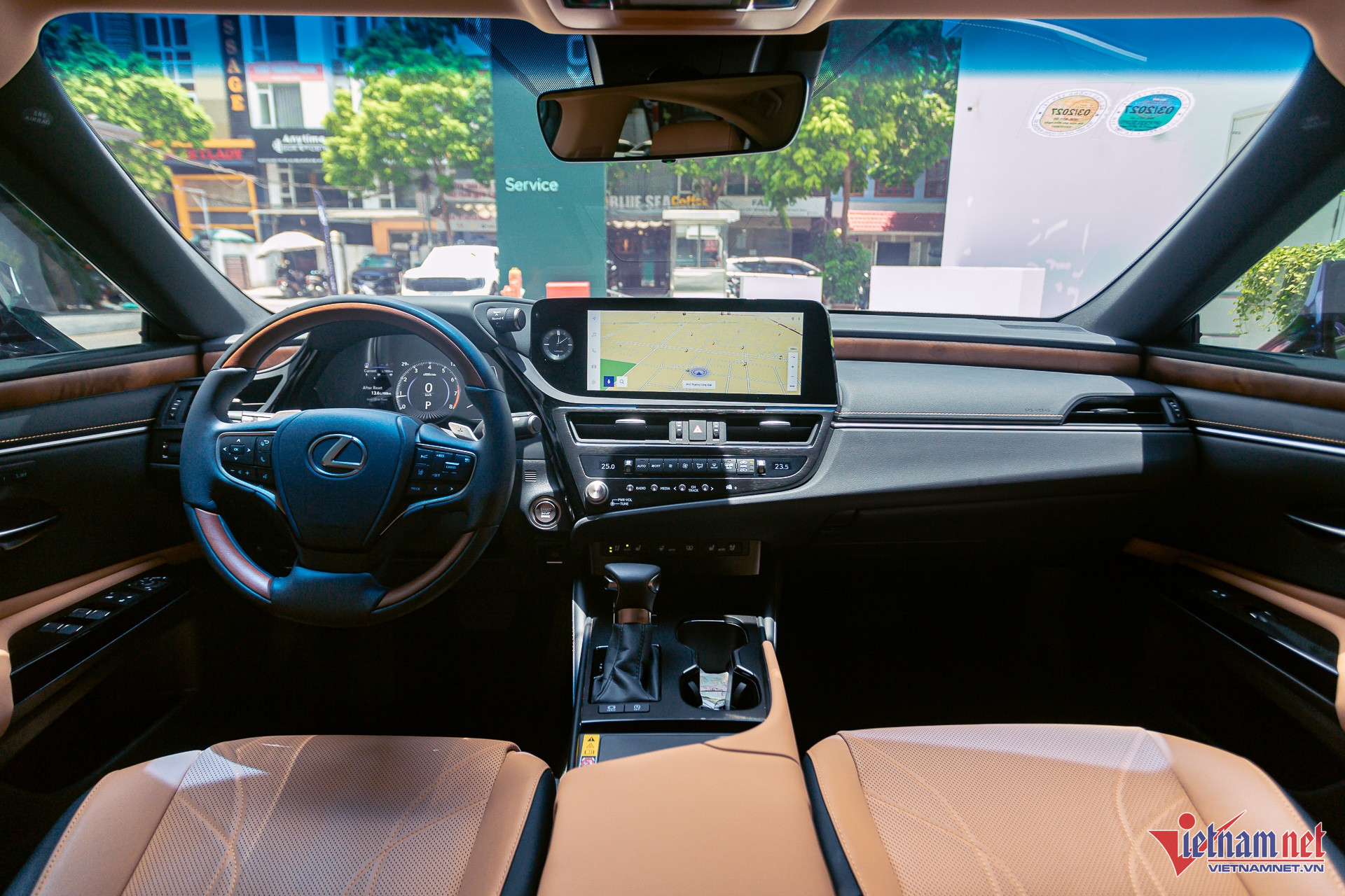 Nội thất xe kết hợp giữa hai tông màu nâu và đen. Gỗ óc chó kéo dài từ hai bên táp-pi cửa ra giữa táp-lô tạo sự liền mạch cho khoang lái. Vô-lăng cũng được ốp gỗ nhằm tăng sự sang trọng. ES 250 2023 trang bị màn hình giải trí 12,3 inch, đi kèm hệ thống âm thanh Lexus Premium 10 loa.