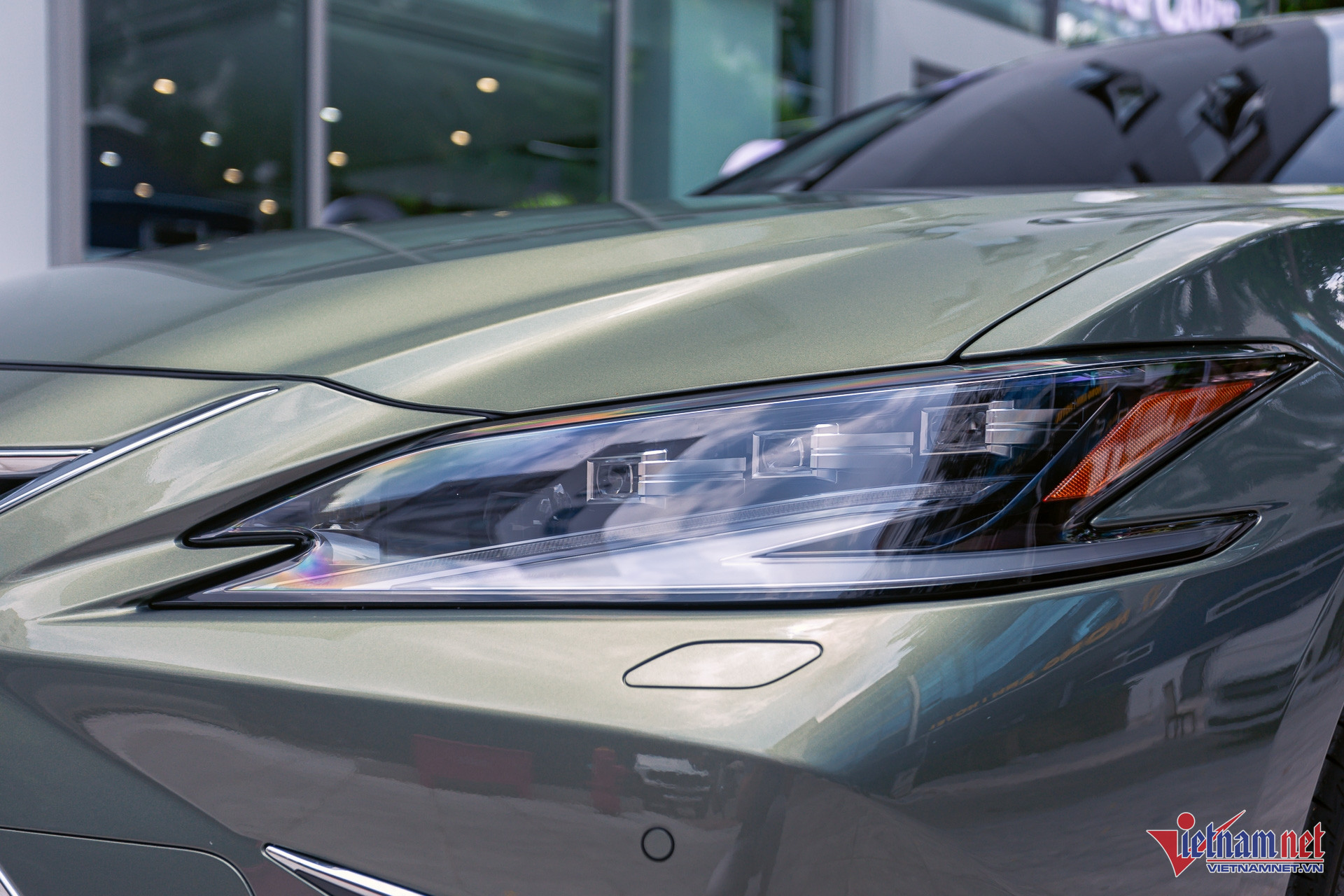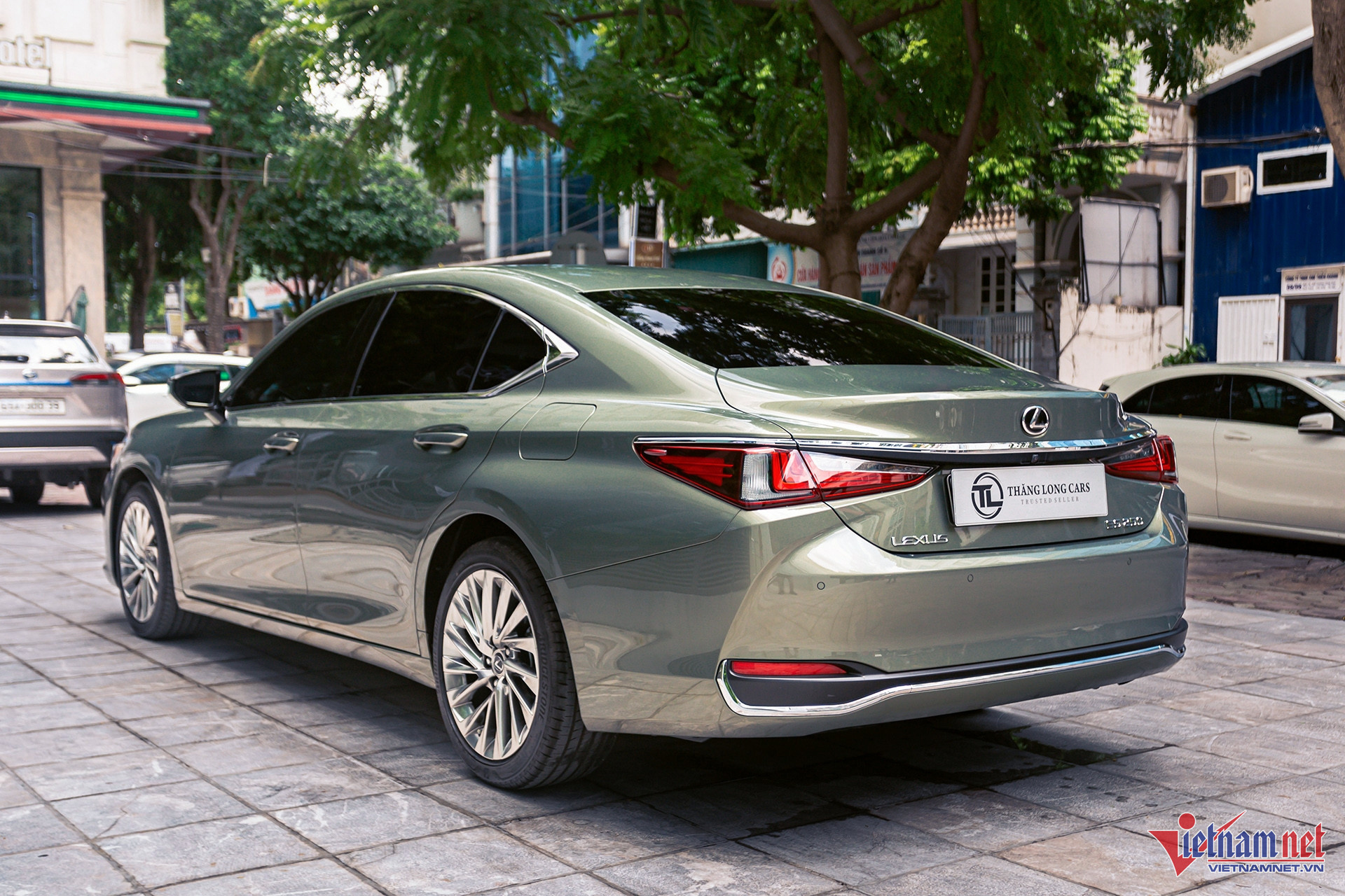 Sau 1 năm sử dụng, tổng thể xe còn giữ được độ mới như xe “đập hộp”. Nước sơn màu xanh lá có tên Sunlight Green Mica Metallic của xe vẫn sáng bóng, sắc ánh kim tương tự xe mới do chủ nhân chăm sóc cẩn thận. Đây cũng là màu sơn hiếm thấy trên những chiếc Lexus ES tại Việt Nam, bởi phần lớn người dùng chọn màu đen hoặc trắng.