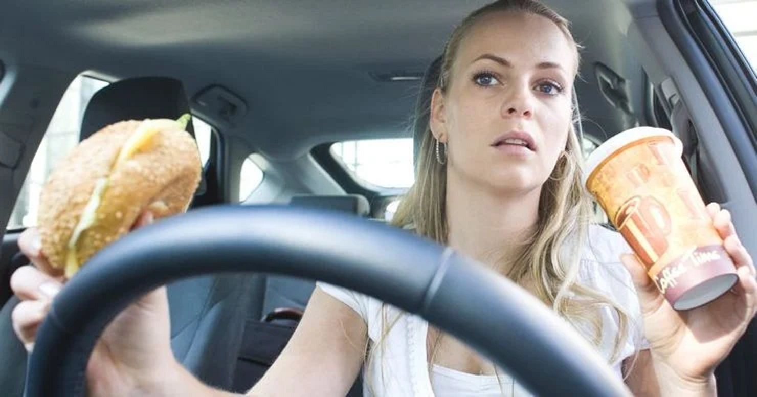 Ăn uống khi đang lái xe không chỉ mất vệ sinh mà còn khiến tài xế bị phân tâm và mất tập trung khi lái xe, từ đó gây ra những vụ tai nạn không đáng có.