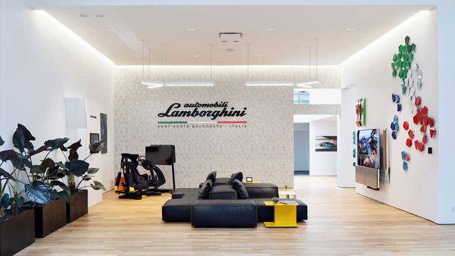 Tổ hợp 2 tầng này mang lại một không gian sinh hoạt cho một câu lạc bộ người chơi xe Lamborghini VIP đúng chất nhất có thể. Hàng loạt gian phòng nhỏ cách âm thích hợp cho các buổi họp hay đơn thuần là trò chuyện vui vẻ. Một gian bếp riêng với đầu bếp người Italia luôn sẵn sàng phục vụ các thượng đế có mặt tại Lamborghini Lounge, tương tự là các gian trưng bày được bài trí thông minh.