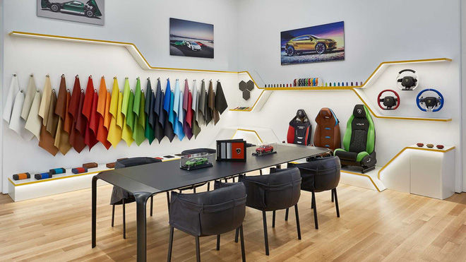 Thậm chí, những chủ xe có mặt tại Lamborghini Lounge có thể ghé thăm trung tâm thiết kế mini đặt tại cơ sở này để cá nhân hóa những "siêu bò" đang có ý định mua và quan sát chúng tận mắt thông qua công nghệ đồ họa 3D.