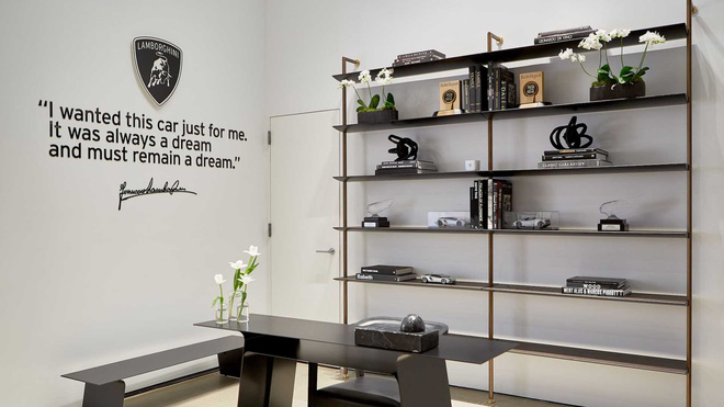 Để có thể đặt chân qua cửa Lamborghini Lounge, bạn phải sở hữu ít nhất một "siêu bò" và có thư mời từ hãng. Nằm tại quận Chelsea phía Tây Manhattan, Lamborghini Lounge có diện tích hơn 500 mét vuông và không chỉ đơn thuần là một căn phòng khách lớn bày biện vài chiếc xe Lamborghini.