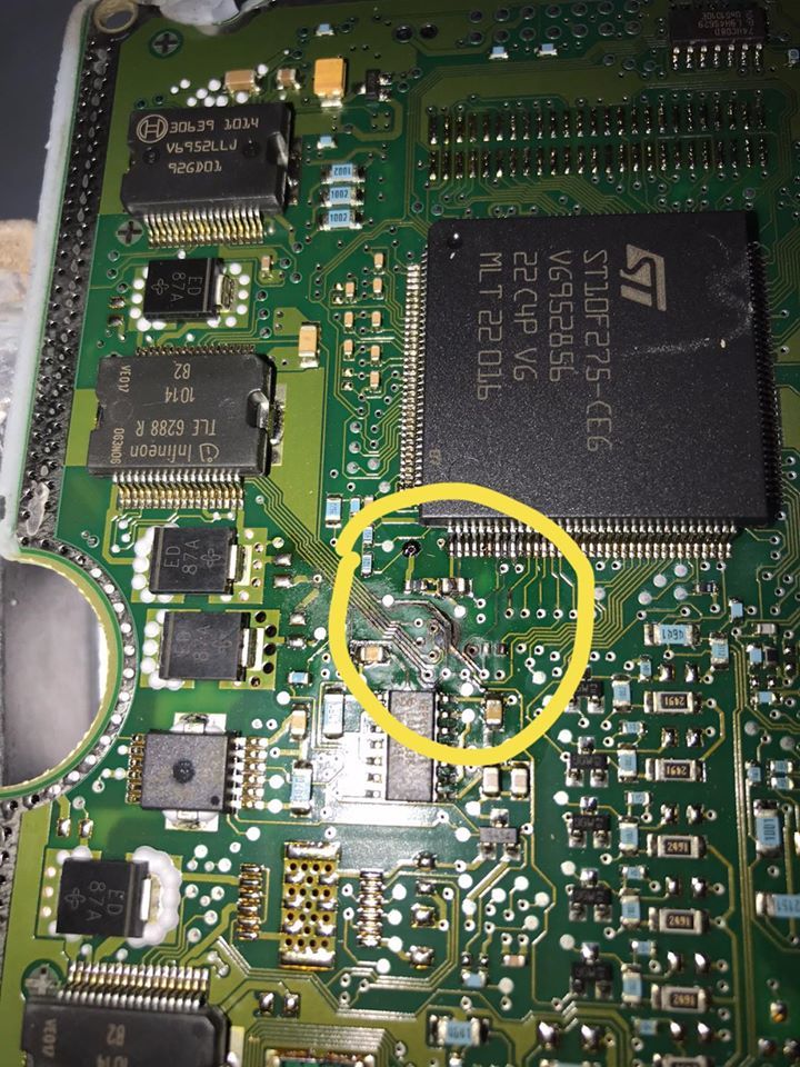 Được biết, vì đến gara xử lý quá muộn nên khi thợ tháo ra kiểm tra, thì con tụ trên vỉ mạch điều khiển động cơ (ECM) chiếc Hyundai i30 của anh Giang đã bị nổ.