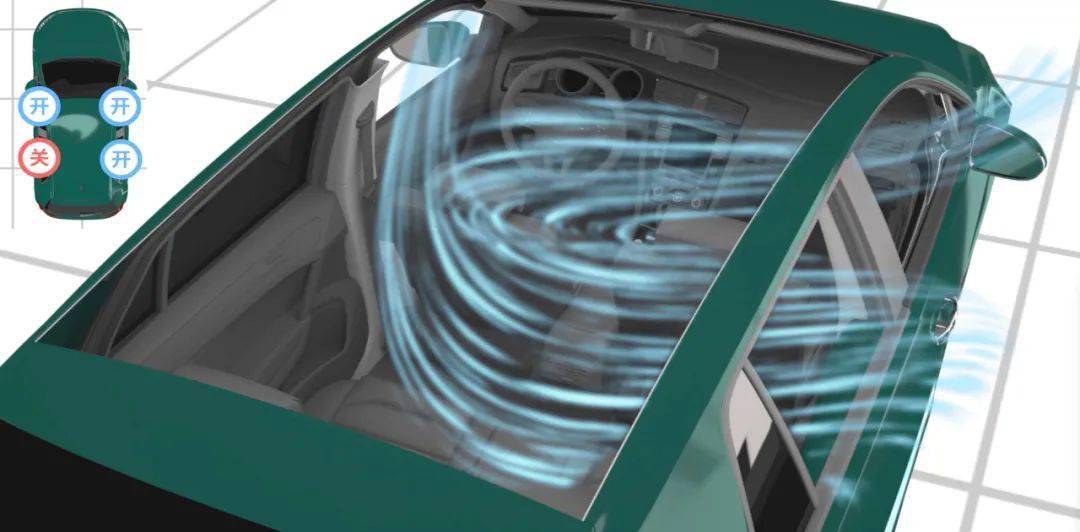 Với cách này, một lượng lớn không khí ở hàng ghế sau sẽ tụ lại tạo thành vùng áp suất cao, sau đó thoát ra từ cửa sổ sau đối diện. Kiểu thông gió này không chỉ có thể tập trung một lượng lớn không khí vào hàng ghế sau, mà còn đẩy nhanh quá trình thoát khí nóng từ cửa sổ phía sau đang mở.