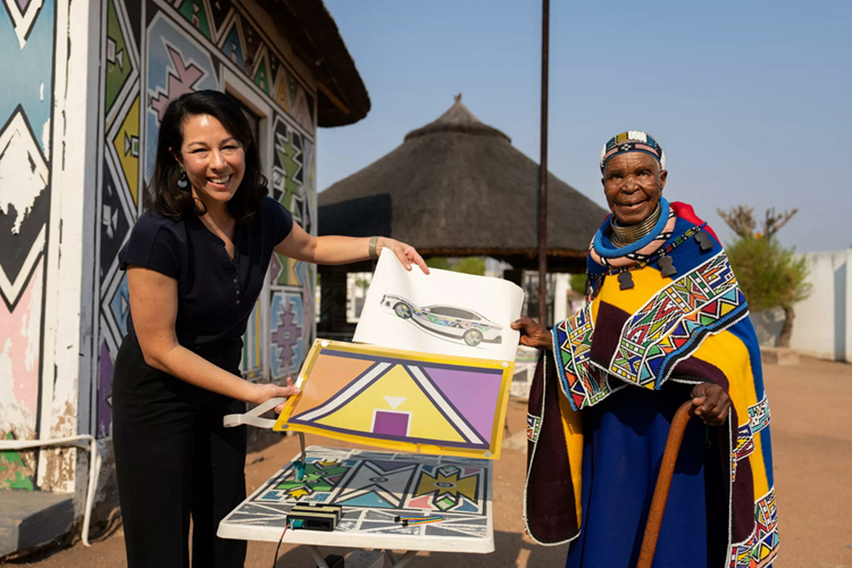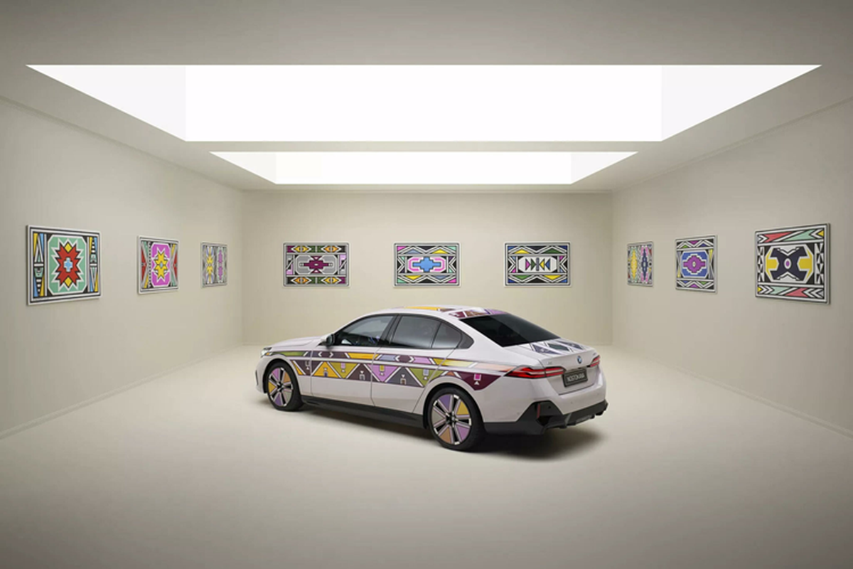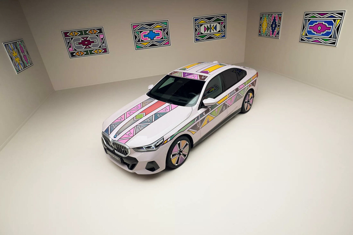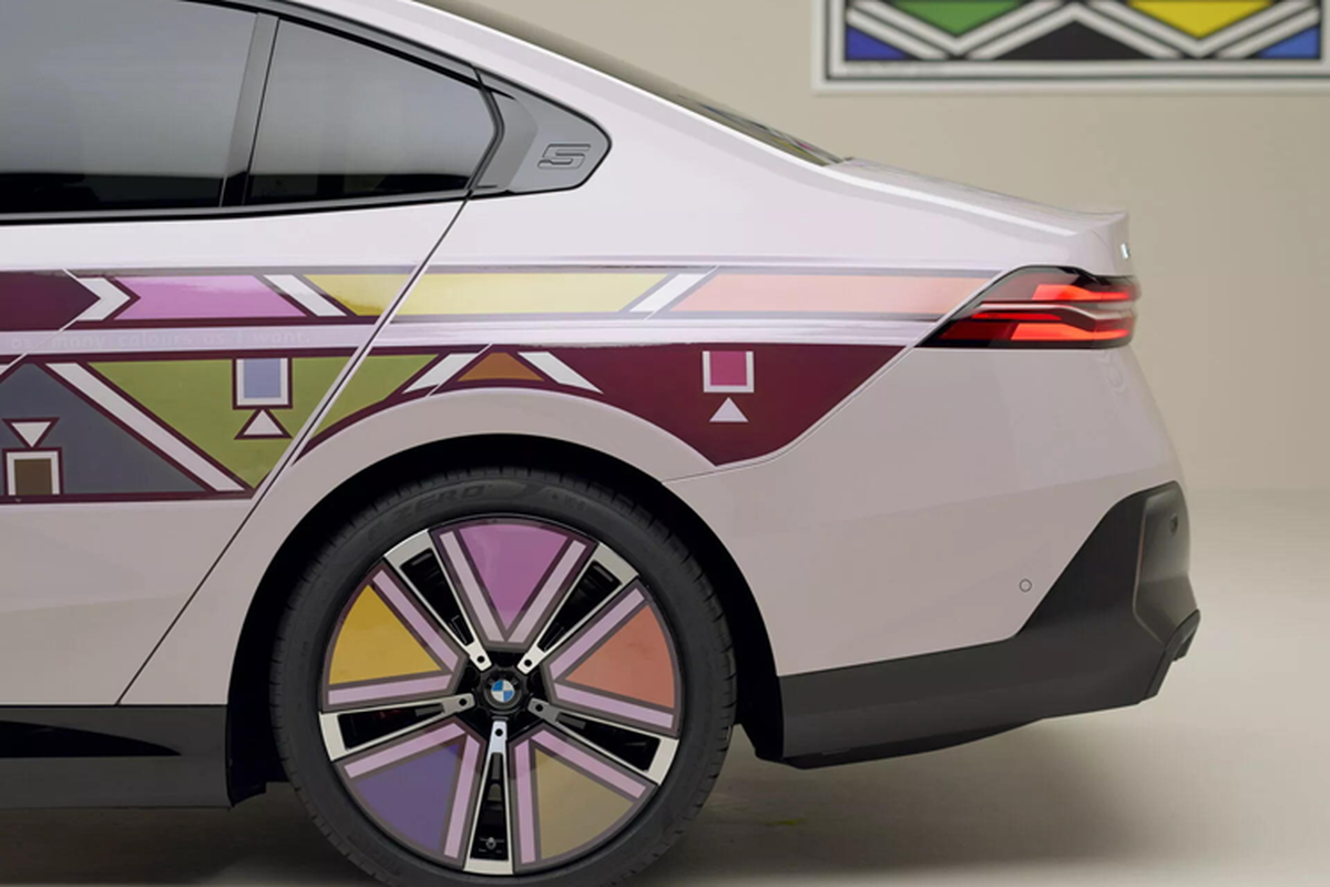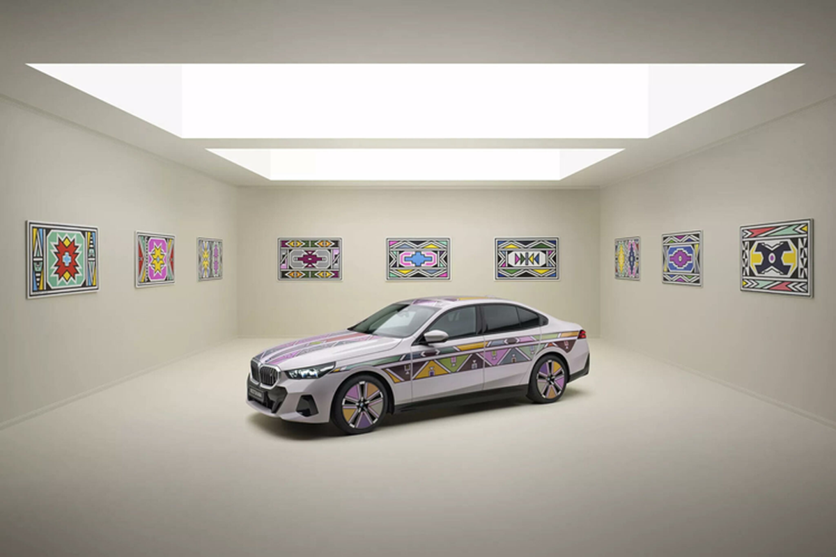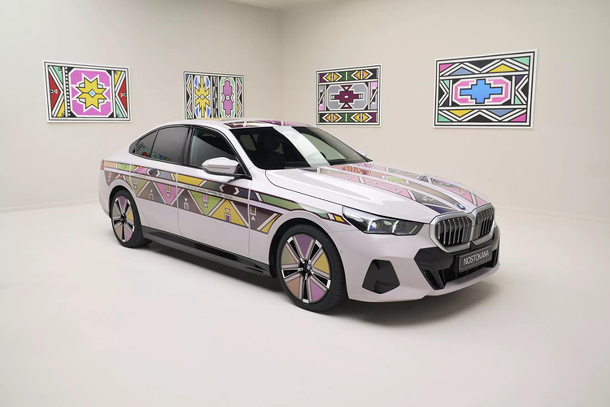 BMW nỗ lực nâng tầm màu sơn ngoại thất xe hơi lên hàng nghệ thuật với i5 Flow Nostokana dùng công nghệ E Ink, lấy cảm hứng từ chiếc BMW 525i Art Car 1991 có sự tham gia của nữ nghệ nhân Esther Mahlangu.