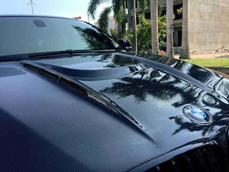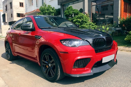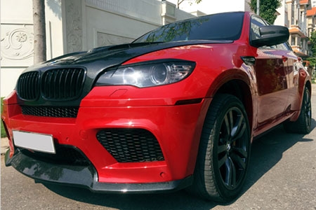 Là một trong những chiếc X6 M thuộc hàng hiếm tại Việt Nam, chiếc SUV thuộc phiên bản 2010 có bộ cánh màu đỏ. Chủ nhân chi thêm 16.000 USD độ nắp ca-pô bằng sợi carbon và cánh gió sau của hãng độ Hamann, hệ thống ống xả hiệu suất cao Akrapovic.