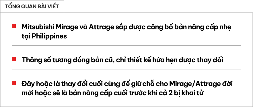 03/05/2025 15:41Bộ đôi 'bán ế' Mitsubishi Mirage và Attrage sắp có bản nâng cấp: Chỉ thay đổi thiết kế, động cơ không đổi, để ngỏ khả năng về Việt Nam
