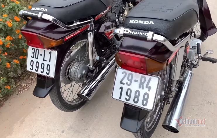 Anh Phạm Hùng Cường, một người chuyên sưu tầm xe máy biển số đẹp ở Đan Phượng, Hà Nội cho biết cách đây 3 tháng anh đã săn mua được hai chiếc xe Dream Thái đời cũ từ năm 1998 sở hữu biển VIP 30-L1-9999 và 29-R4-1988 khá độc lạ.