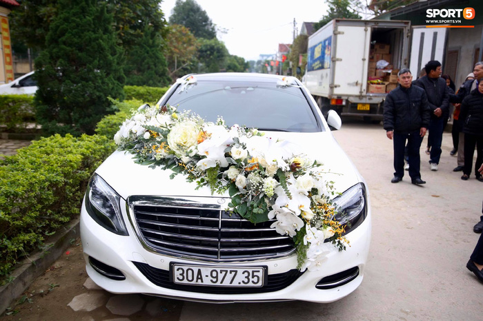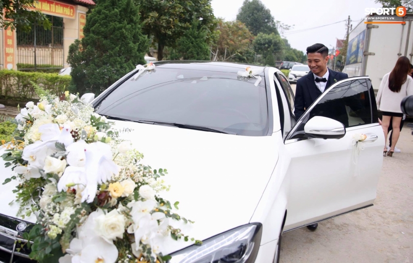 Sáng ngày 2/1, đám cưới của trung vệ Bùi Tiến Dũng diễn ra tại quê nhà Hà Tĩnh. Từ sáng sớm, Tiến Dũng diện vest bảnh bao, tự lái xe tiền tỷ Mercedes-Benz S400 sang trọng đi đón cô dâu Khánh Linh.