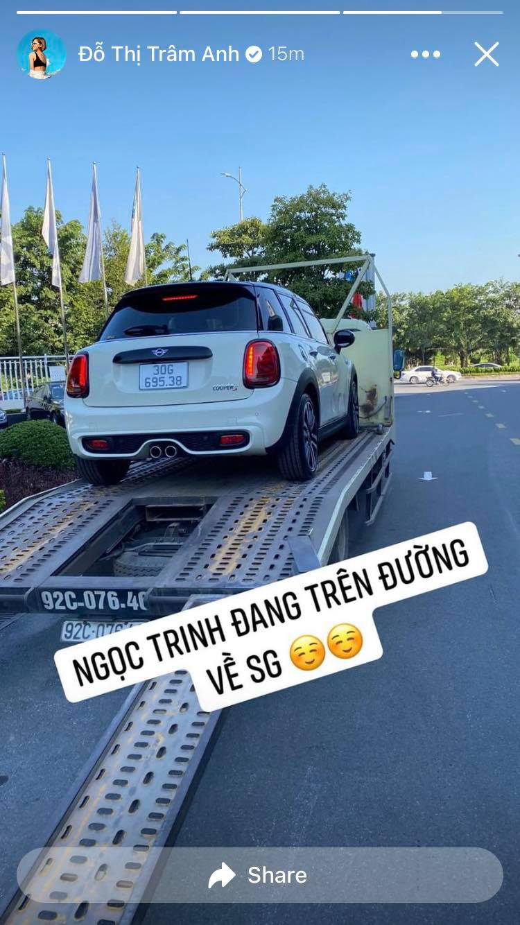Mới đây, hotgirl Trâm Anh tiết lộ việc sở hữu một chiếc xe hơi Mini Cooper S sang trọng. Tuy nhiên, điều khiến nhiều người ngạc nhiên là người đẹp cho biết chiếc xe này được mua bằng tiền "tài trợ" chứ không phải của mình. "Chụp ảnh cùng nhà tài trợ kim cương. Chứ mình đâu có tiền đâu mà mua. Cảm ơn mẹ iu đã tài trợ chương trình này", Trâm Anh chia sẻ cùng bức ảnh chụp cùng mẹ.