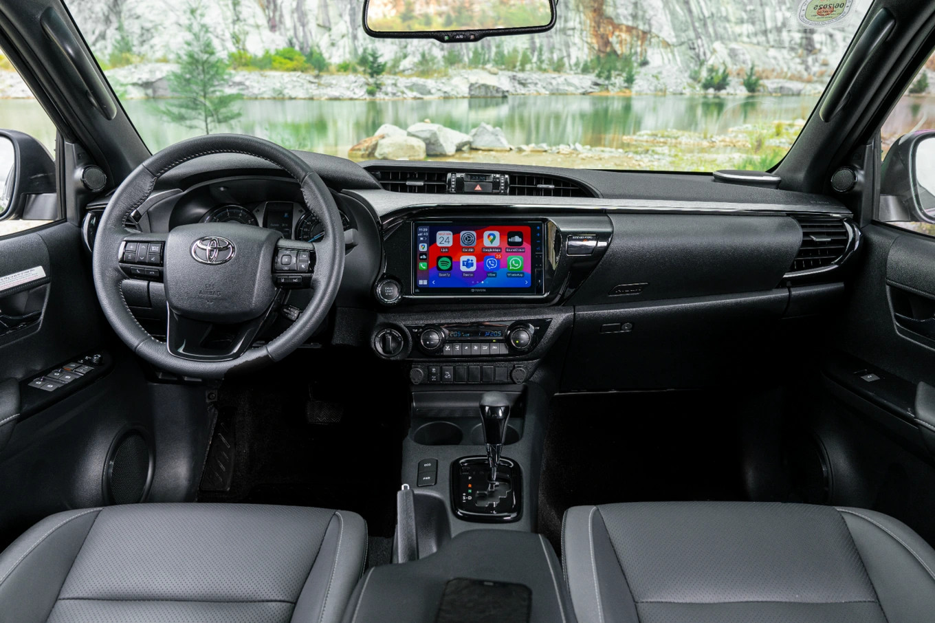 Bên trong, Toyota Hilux 2024 bổ sung phiên bản cao cấp với màn hình giải trí 9 inch, kết nối điện thoại thông minh, điều hòa 2 vùng.