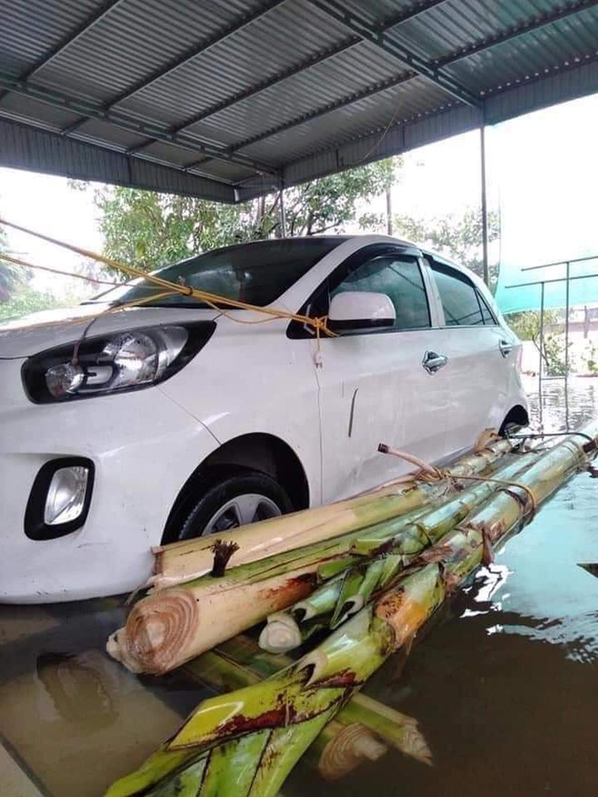 Hay gần đây, trên mạng lan truyền hình ảnh người dân chuẩn bị bảo vệ xế hộp trước cơn lũ dữ như đưa xe lên vùng cao hơn, thậm chí lắp bè chuối cho ô tô để tránh tình trạng "lội nước".
