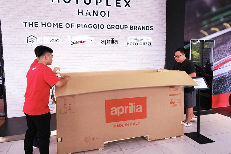 Mới đây tại MotoPlex Hà Nội, chiếc xe môtô Hypernaked Aprilia Tuono V4 đầu tiên tại Việt Nam trị giá 680 triệu đồng đã được chính tay khách hàng "khui thùng".