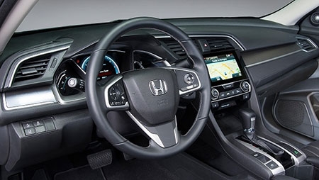 Thay đổi về thiết kế ngoại thất, Civic 2016 cũng trang bị hàng loạt tiện nghi về nội thất bên trong. Civic 2016 hiện đại hơn với đồng hồ tốc độ kỹ thuật số, màn hình TFT hiển thị đa màu sắc, hệ thống thông tin giải trí với màn hình cảm ứng 7 inch tích hợp Apple CarPlay và Android Auto, hệ thống kiểm soát khí hậu tự động.