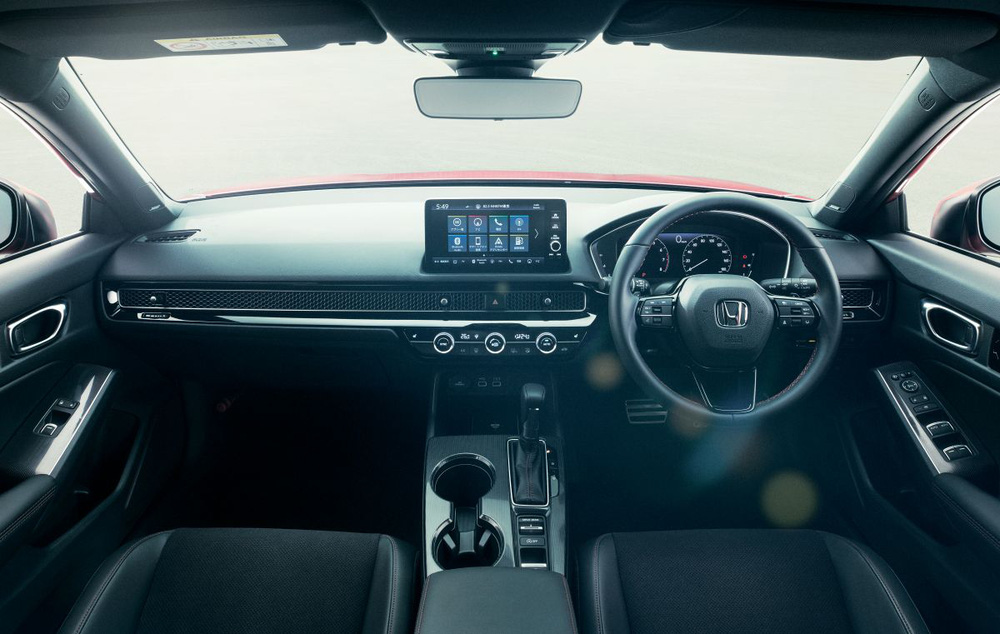 Bên trong, Honda Civic Hatchback 2022 sở hữu thiết kế mặt táp-lô như mẫu xe sedan Audi, nổi bật với màn hình cảm ứng thông tin giải trí độc lập, dải lưới tổ ong kéo dài theo chiều rộng bảng táp-lô và che phủ lên các cửa gió điều hòa.