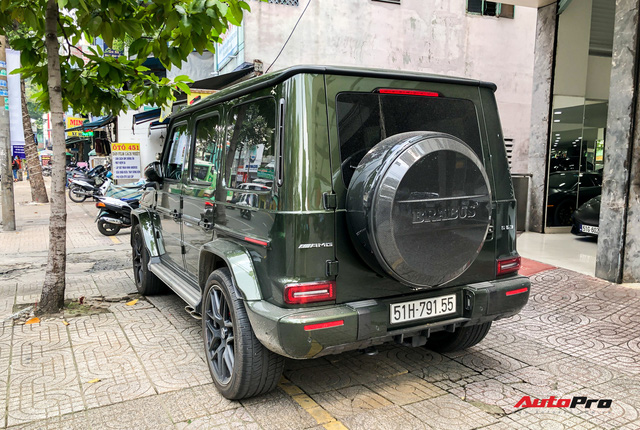 Đây là chiếc G 63 duy nhất trong nước hiện có màu sơn xanh lá này. Bên hông xe có chi tiết phản quang màu cam ở gần vòm bánh xe khiến nhiều người tin rằng xe được đưa từ thị trường Mỹ về Việt Nam thông qua nhà nhập khẩu tư nhân.