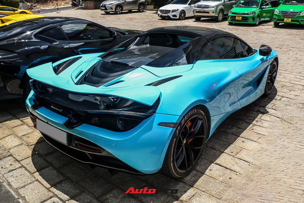 So với lần xuất hiện trước, màu ngoại thất đen bóng nguyên bản của xe đã được dán decal màu xanh dương. Trước đó, chiếc McLaren 720S phiên bản Launch Edition, đồng thời cũng là chiếc 720S đầu tiên về nước cũng đổi sang tông màu tương tự.