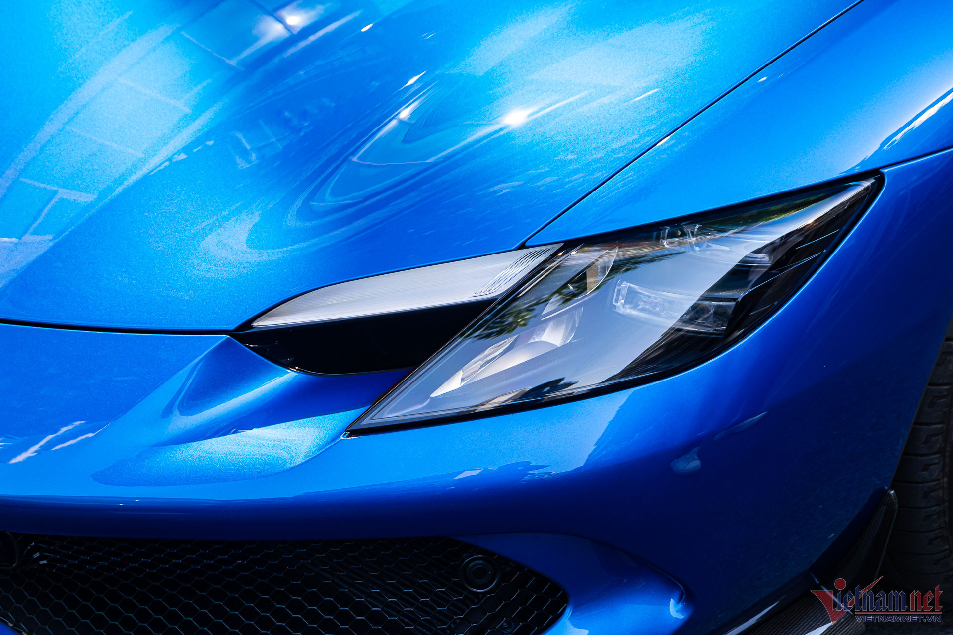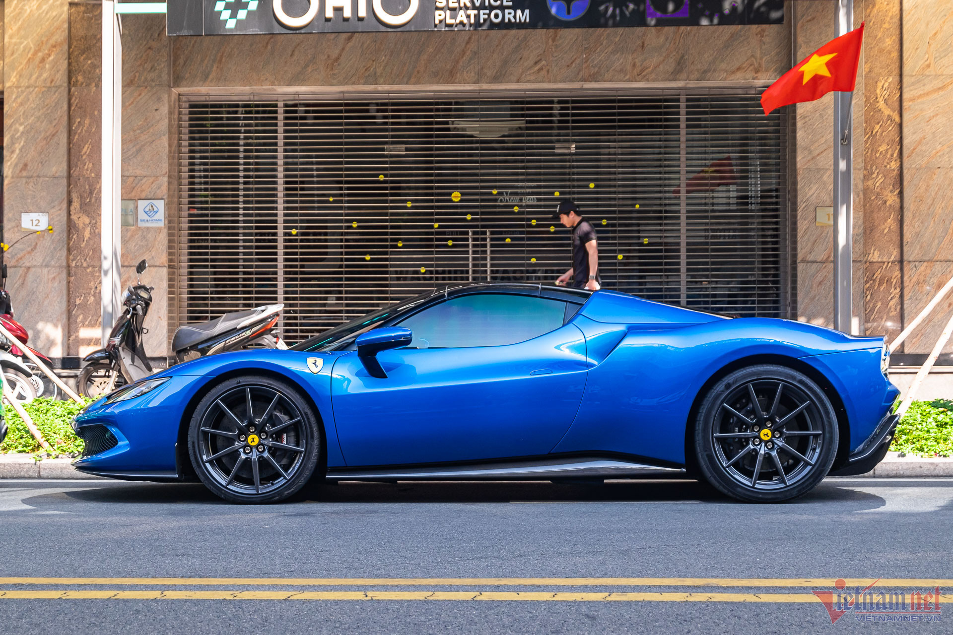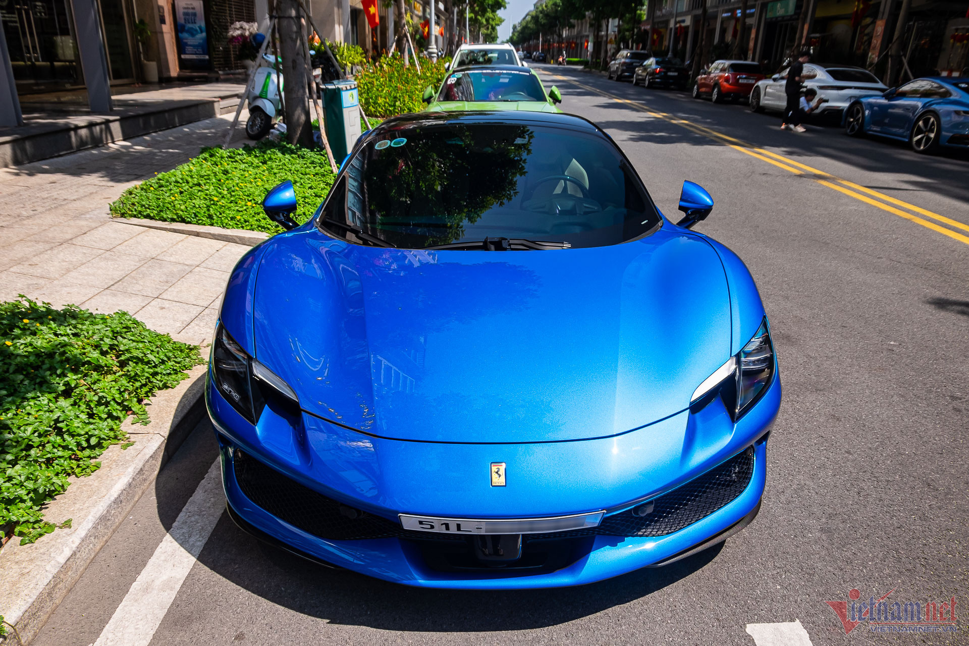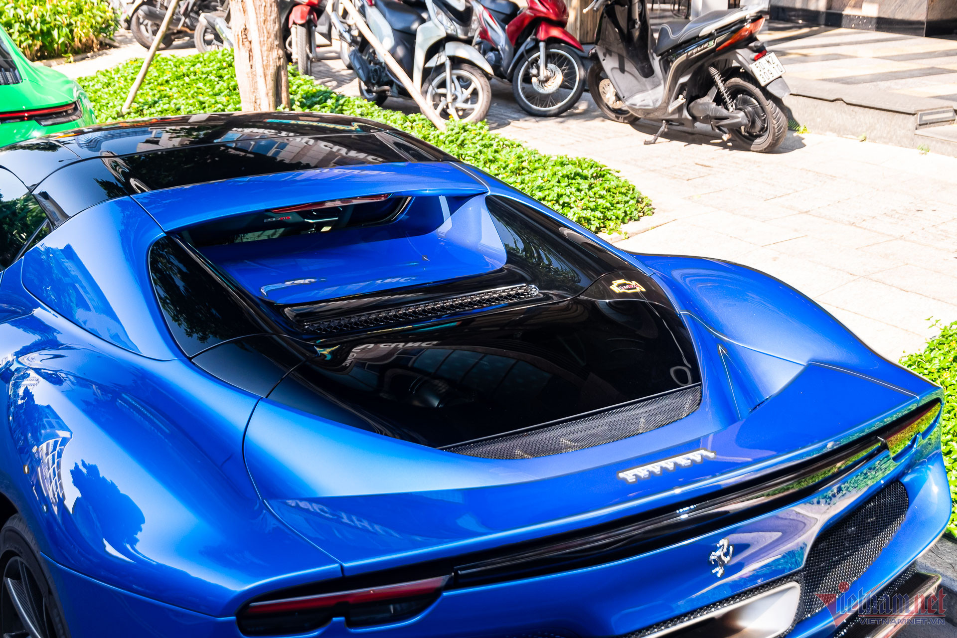 Ngoại thất xe mang màu sơn xanh dương, có tên Blu Corsa trong bảng màu tùy chọn của nhà sản xuất. Đây cũng là tông màu ít xuất hiện trên những chiếc Ferrari tại Việt Nam, khác với chiếc 296 GTS đầu tiên sơn màu đỏ rực rỡ hơn.