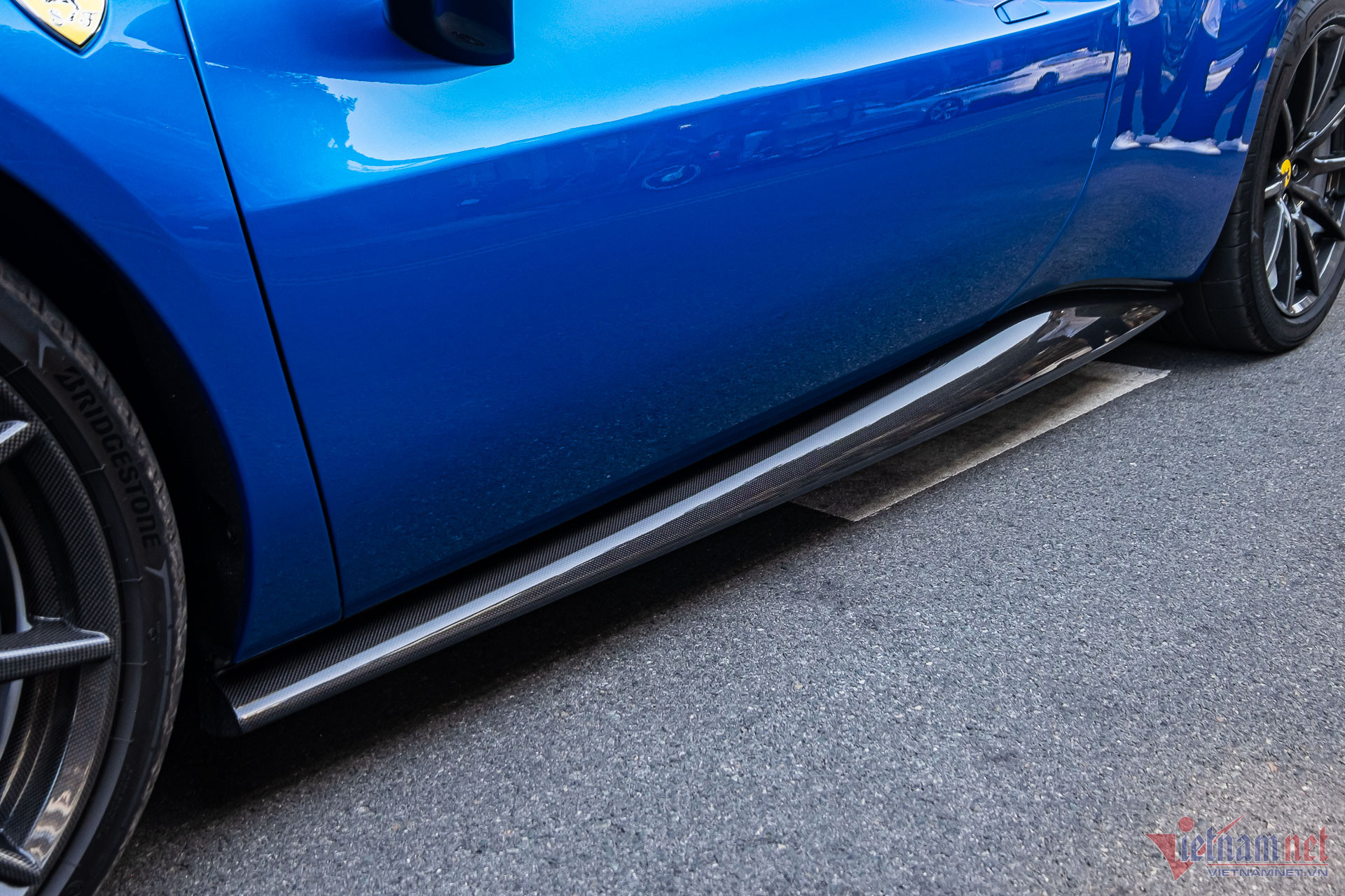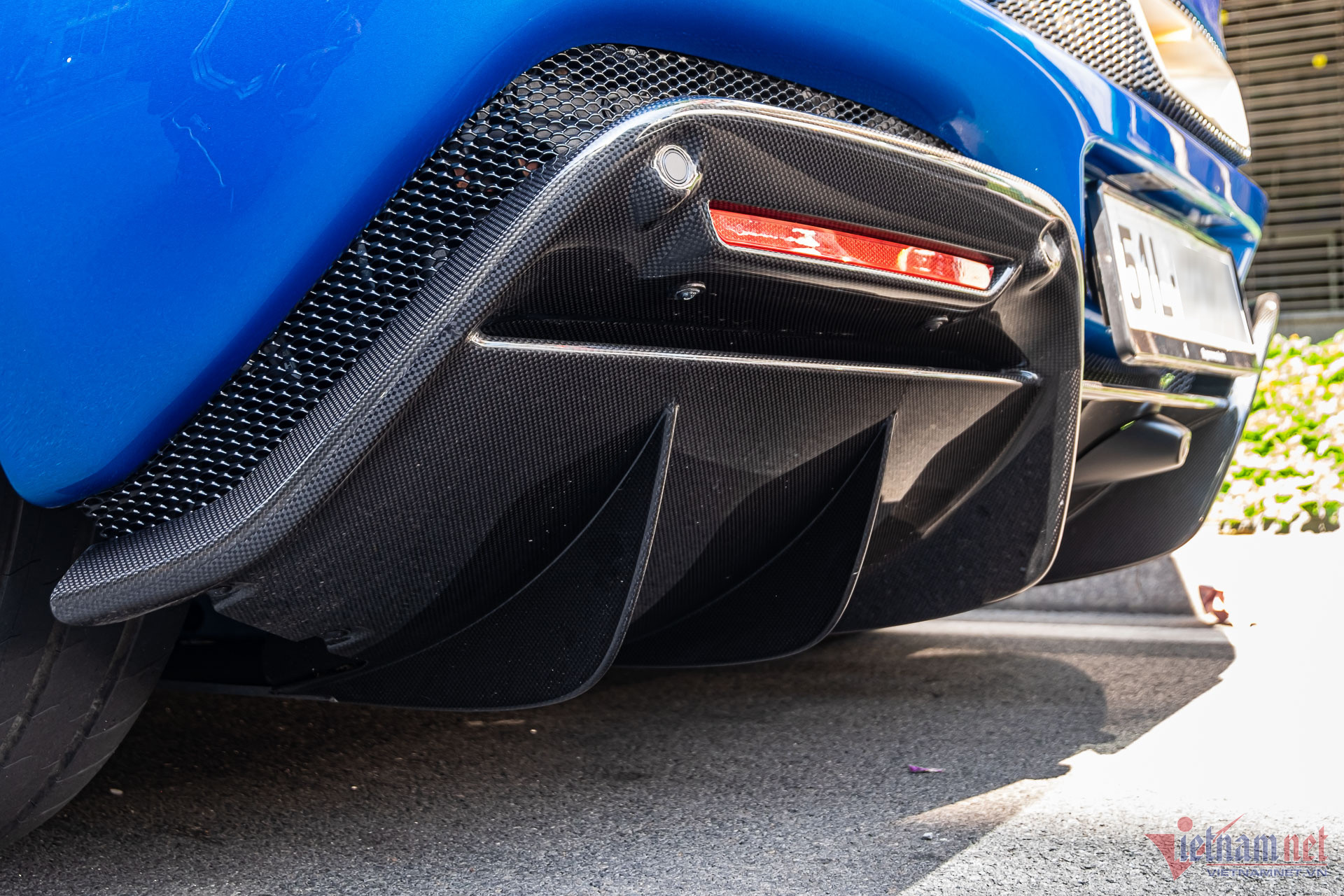 Một số chi tiết ở ngoại thất làm bằng chất liệu carbon, được chủ xe chọn mua gồm líp cản trước, ốp sườn, bộ khuếch tán đuôi xe. Riêng những tùy chọn trên tiêu tốn số tiền không dưới 500 triệu đồng của chủ xe.