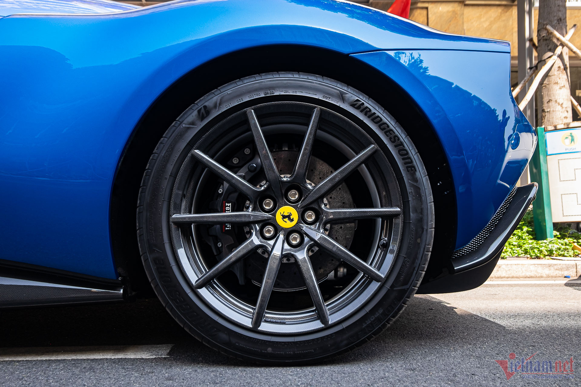 Đặc biệt, bộ mâm "siêu ngựa" này có kích thước 20 inch hoàn thiện bằng sợi carbon, mang thiết kế đa chấu đậm chất thể thao. Bên trong là cùm phanh màu đen không quá nổi bật, đi kèm đĩa phanh gốm – carbon cỡ lớn. Theo tìm hiểu, giá bán bộ mâm lên tới hơn 1 tỷ đồng, bằng giá với bộ mâm tương tự trên chiếc Ferrari SF90 Stradale đầu tiên về Việt Nam.