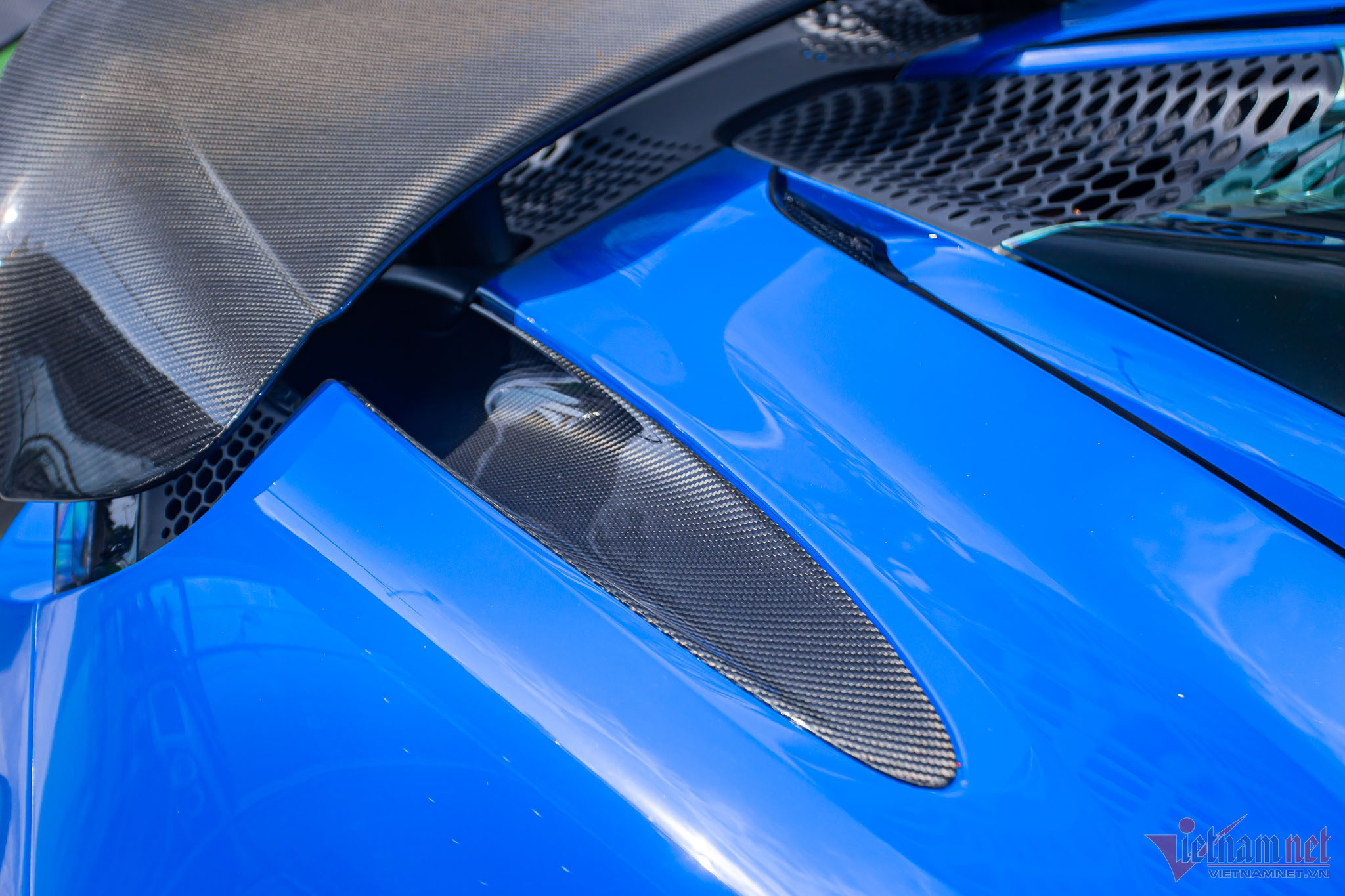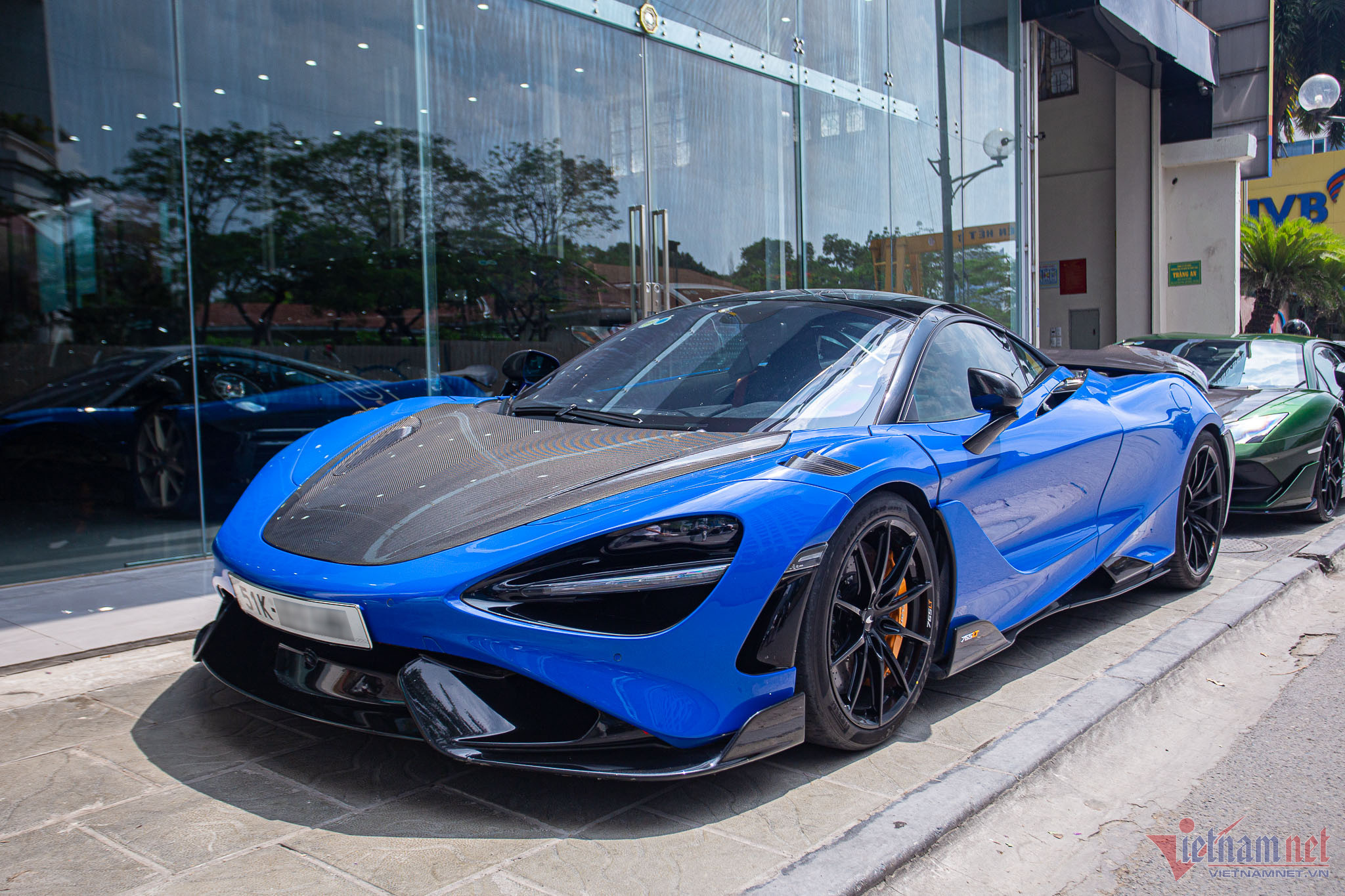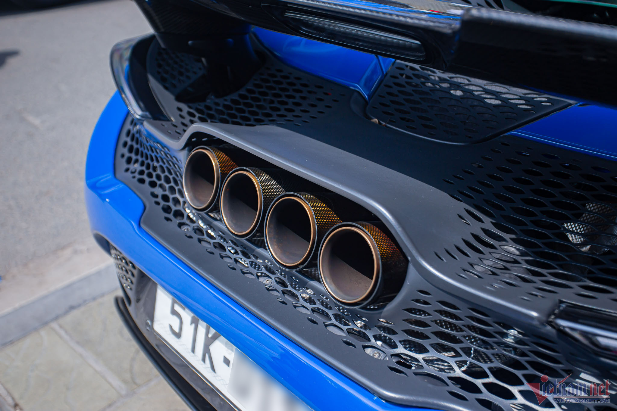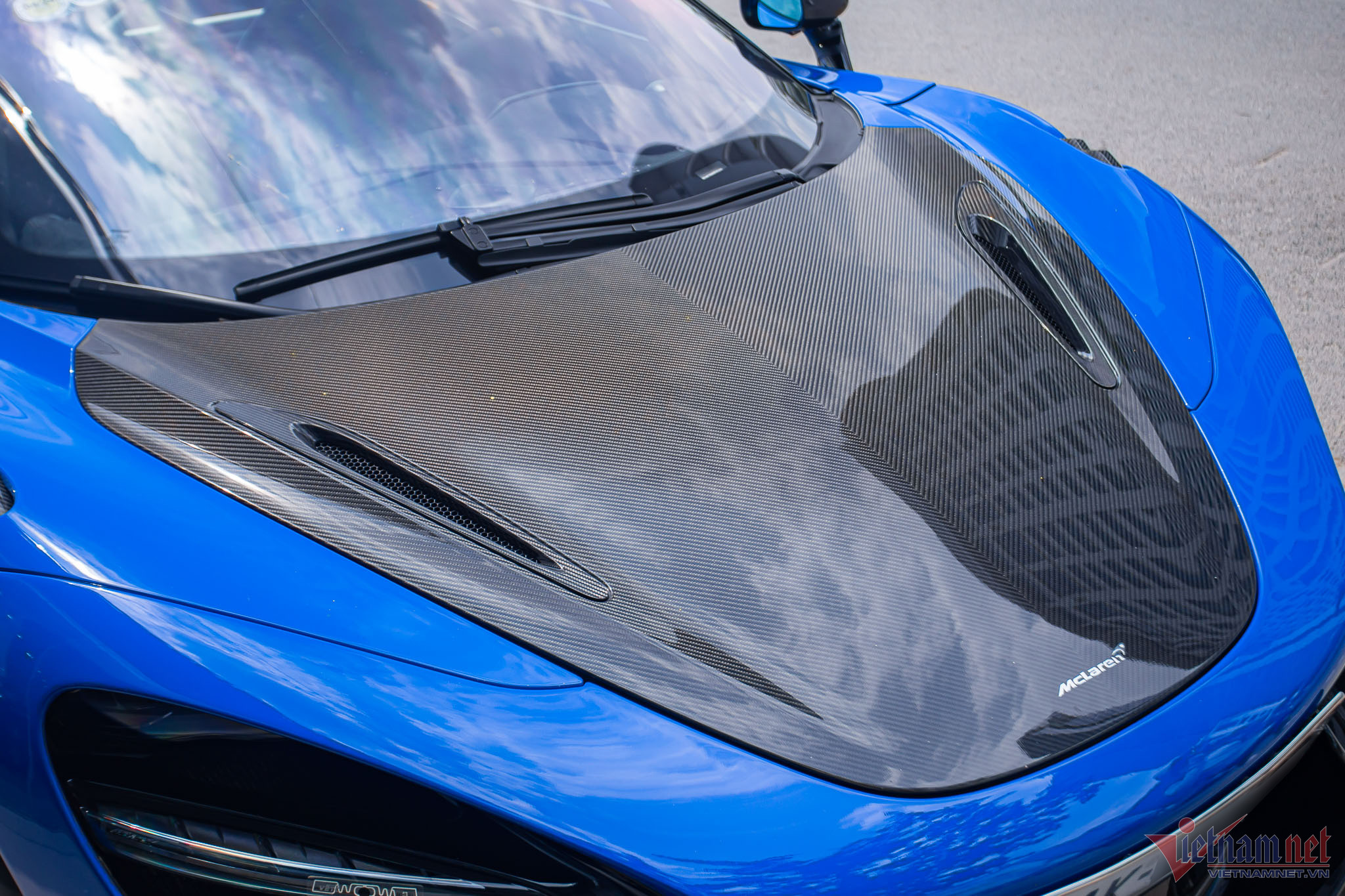 Khác với những chiếc 765LT khác ở nước ta sơn màu cam, siêu xe này sở hữu ngoại thất màu xanh dương có tên gọi Paris Blue. Màu sơn này có giá trị cao hơn do được phát triển bởi bộ phận cá nhân hóa MSO (McLaren Special Operations).