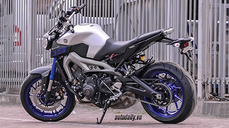 Nhìn từ góc độ này, Yamaha MT-09 trông khá hiền lành khác xa với khối động cơ mạnh mẽ bên trong xe. |