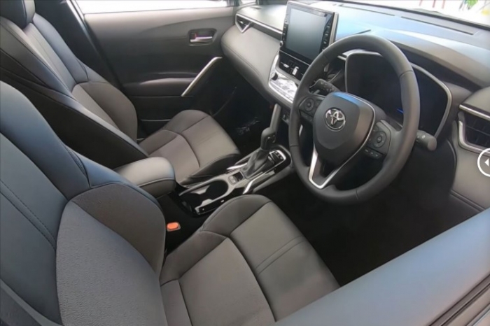Bên trong khoang cabin, Toyota Corolla Cross 2022 dành cho thị trường Nhật Bản được trang bị màn hình thông tin giải trí đặt nổi cùng vô-lăng đa chức năng và cụm đồng hồ kĩ thuật số. Ngoài ra, đối thủ của Kia Seltos còn được cung cấp cấp thêm phanh tay điện tử, cửa sổ trời toàn cảnh. Danh sách các trang bị an toàn trên Toyota Corolla Cross 2022 gồm có ga hành trình thông minh, hệ thống cảnh báo va chạm, cảnh báo va chạm trước.