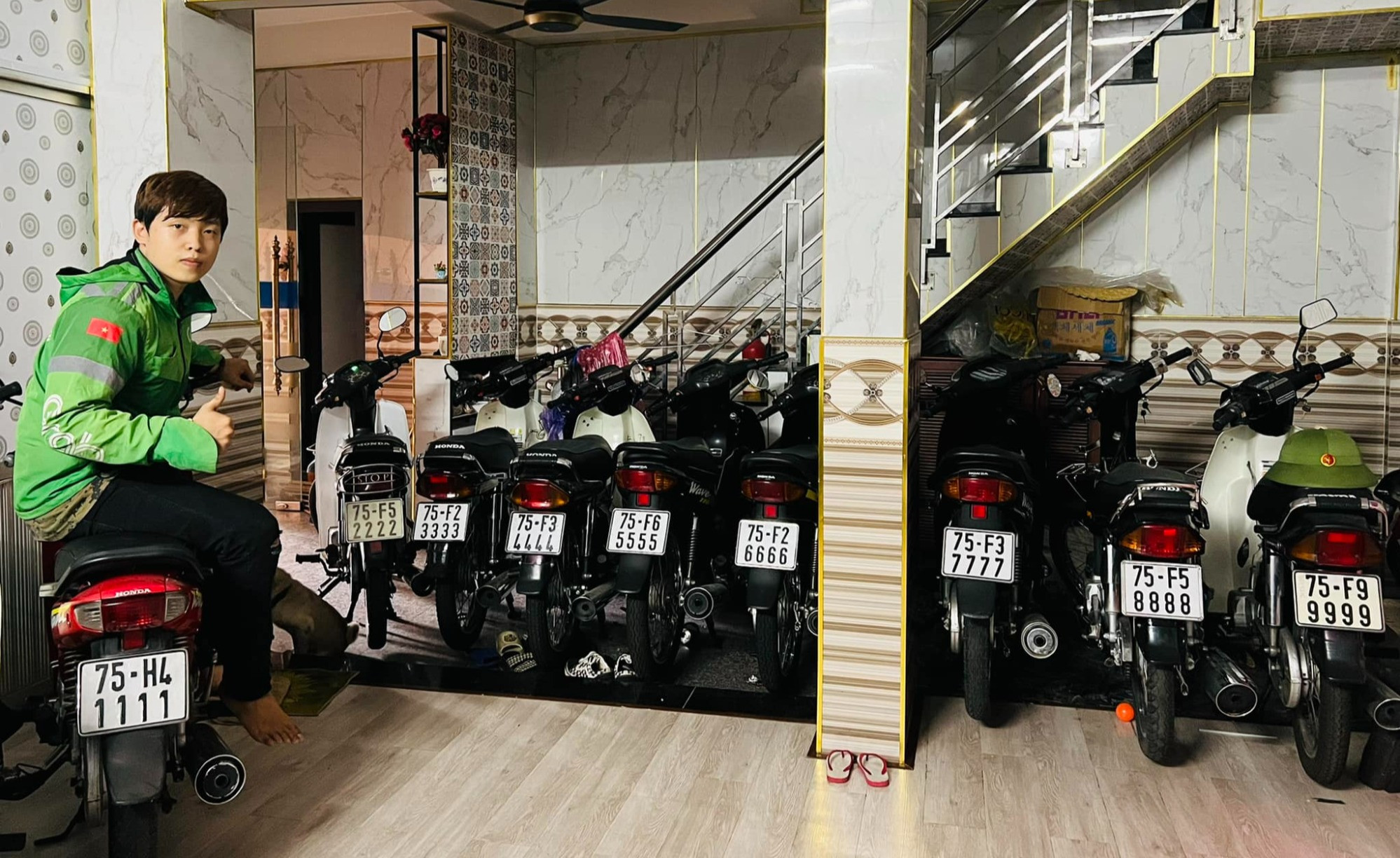 Điều đáng phục ở chàng trai này là chỉ trong chưa đầy 1 năm, anh đã hoàn thiện được dàn xe biển tứ quý từ 1-9 gồm: một chiếc Honda Wave Alpha biển tứ quý 1; Dream Lùn biển tứ quý 2; 3 chiếc Wave Thái biển tứ quý 5, 6, 7; và 3 chiếc Dream Thái biển tứ quý 7, 8, 9...