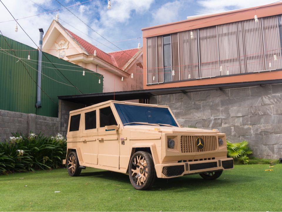 Chính vì điều này cả hai đã cùng bắt tay vào chế tạo chiếc SUV từ bìa cát tông. Phiên bản siêu tiết kiệm này được mô phỏng theo mẫu Mercedes-Benz G63 đời 2019.