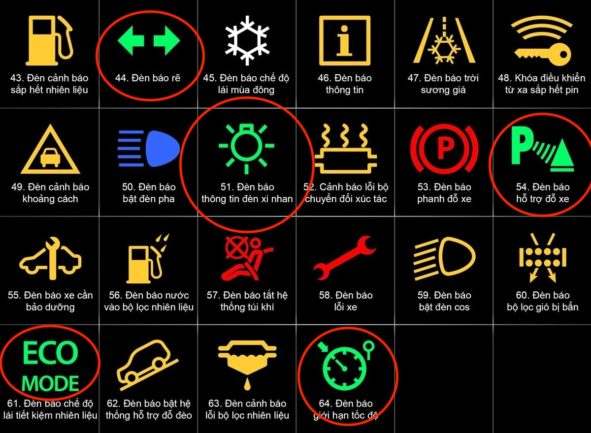 Khi nhìn thấy các loại đèn này, tài xế đơn giản chỉ cần hiểu rằng chiếc xe không gặp bất cứ vấn đề gì đáng lo ngại. Đồng thời, trong một số tình huống lái xe như vào ban đêm, đổ dốc/ đèo mà không thấy một số màu đèn này xuất hiện, tài xế nên nghĩ đến yếu tố như quên chưa bật đèn cốt hoặc chưa kích hoạt chế độ đỗ trợ đổ đèo, chống trơn trượt (nếu có).