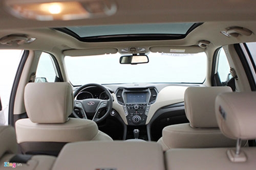 | Nội thất của Santa Fe mới lần đầu tiên được bổ sung thêm màu be. Cửa sổ trời toàn cảnh panorama còn giúp không gian bên trong sáng hơn. |