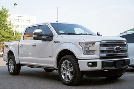 Ford F-150 là một trong những dòng xe bán tải được ưa chuộng nhất tại Mỹ. Phiên bản cao cấp nhất của dòng xe bán tải này đã được nhập khẩu về Việt Nam cách đây ít hôm bởi một showroom tư nhân. F-150 Platinum sở hữu chiều dài 5.890 mm, rộng 2.029 mm. Trục cơ sở xe dài 3.683 mm. Thân hình đồ sộ của F-150 Platinum 2015 có trọng lượng lên đến khoảng 2,2 tấn. |