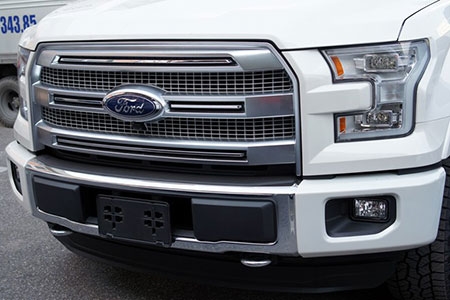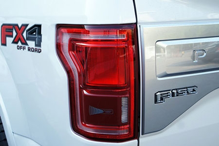 F-150 Platinum có thiết kế đầu xe đầy khỏe khoắn, nam tính. Tuy nhiên, mẫu xe này không vì vậy thô kệch khi được kết hợp cùng các chi tiết chrome ở lưới tản nhiệt và cản trước. |