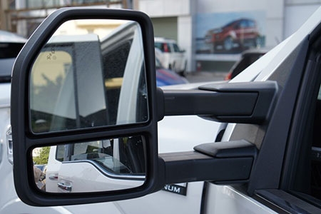 Kính chiếu hậu chia tách làm 2 cũng có kích thước lớn, có thể thu gọn bằng nút bấm. Bên cạnh đó, gương chiếu hậu của xe tích hợp đèn xi-nhan và hệ thống sưởi. |
