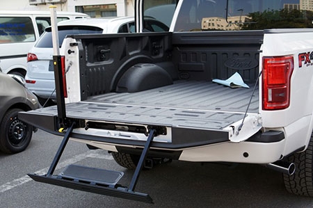 Thùng phía đuôi xe trang bị bậc lên xuống, tích hợp bên trong thành sau. |