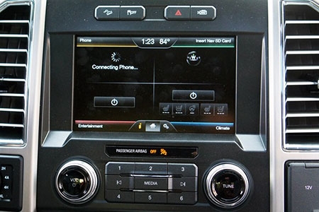 Nội thất phiên bản cao cấp nhất dòng xe bán tải F-150 2015 trang bị nhiều tiện ích hiện đại. Giá bán của mẫu xe này tại Việt Nam khoảng 130.000 USD.