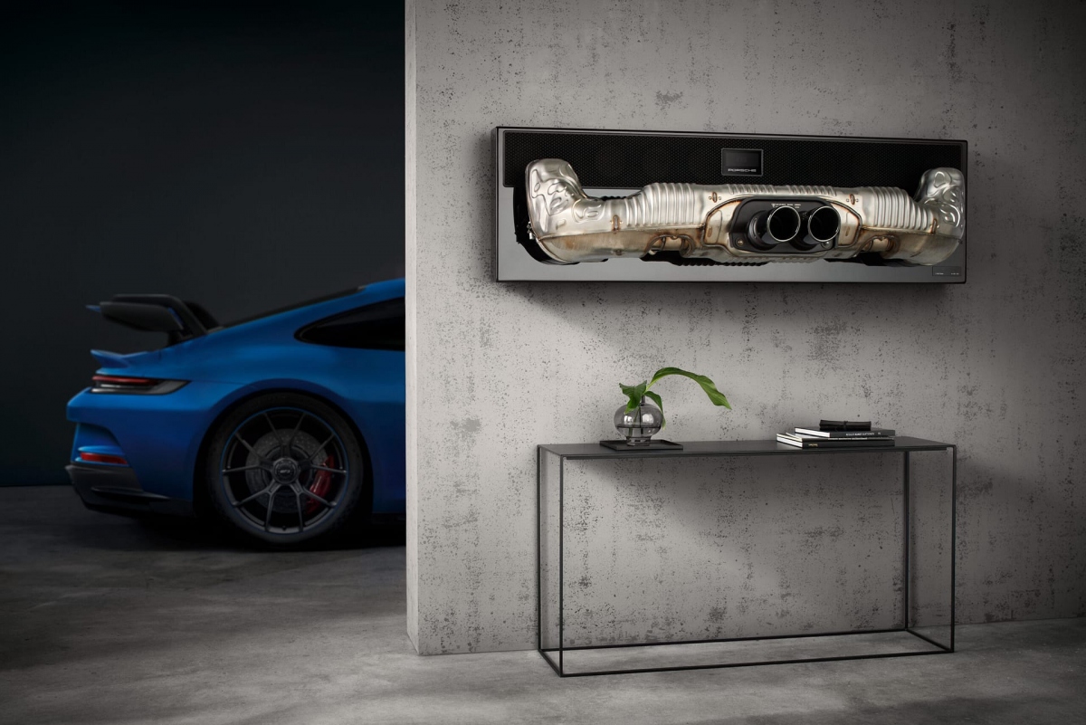 Bộ loa mang tên 911 Soundbar 2.0 Pro được chế tạo từ các bộ phận nguyên bản của hệ thống xả của chiếc 911 GT3 thế hệ 992. Loa sở hữu hệ thống âm thanh vòm ảo 2.1.2, công suất 300 watt, cổng HDMI 4K, Bluetooth 5.0, Dolby Atmos DTS-HD và phát trực tuyến với Apple AirPlay và Google Chromecast được tích hợp sẵn.
