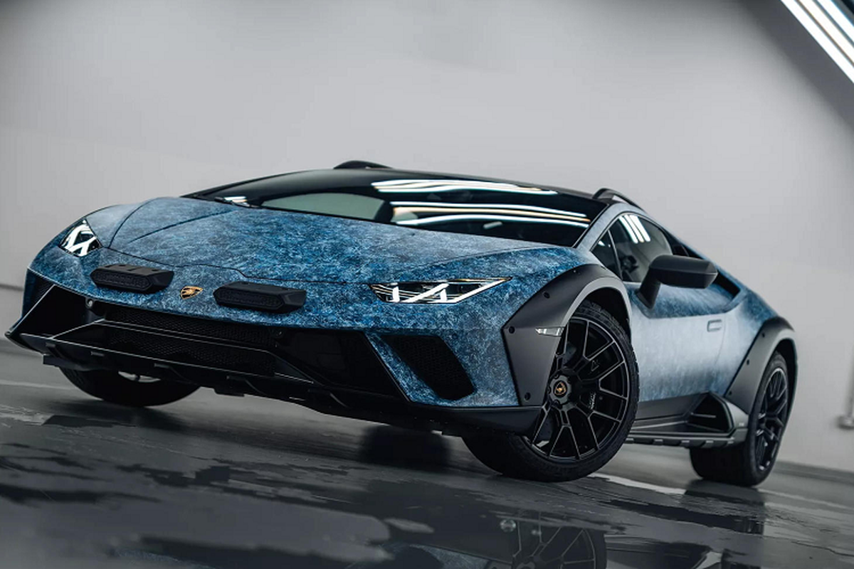 Chiếc siêu xe Lamborghini Huracan Sterrato Opera Unica độc đáo này được tạo ra bởi bộ phận Ad Personam chuyên cá nhân hóa Lamborghini và cần đến hơn 370 giờ đồng hồ để hoàn thiện lớp sơn ngoại thất.