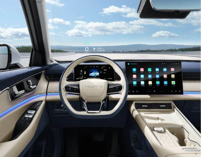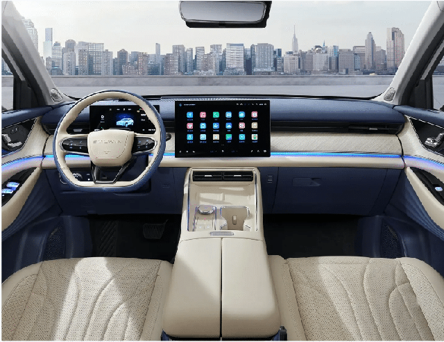 Nội thất tối giản với màn hình điều khiển trung tâm nổi 2,5K 15,6 inch, bảng đồng hồ LCD toàn màn hình 10,25 inch và vô lăng ba chấu dạng đáy phẳng hình chữ D được trang bị chip Qualcomm Snapdragon 8155. Bảng điều khiển trung tâm có bảng sạc không dây 50W cho điện thoại di động, giá để cốc và núm xoay. Bên dưới màn hình điều khiển trung tâm là cửa gió điều hòa hình chữ nhật.