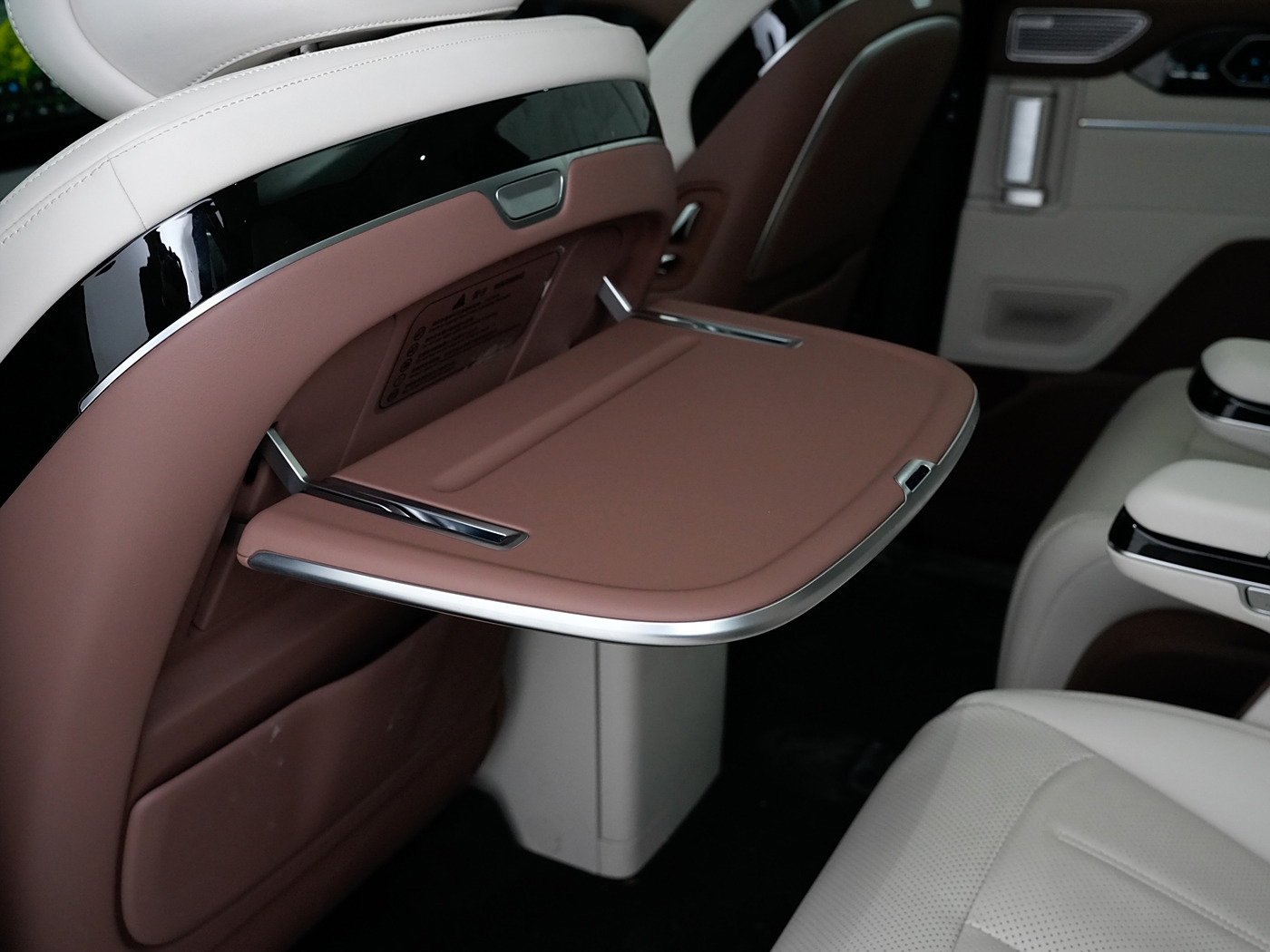 Không gian để chân ở hàng ghế thứ hai cũng rất rộng rãi. Hàng ghế này còn được trang bị màn hình giải trí gắn trên trần xe. Hàng ghế thứ hai cũng được trang bị tủ lạnh mini và bàn gấp, đáp ứng nhu cầu sử dụng cho mục đích thương mại.