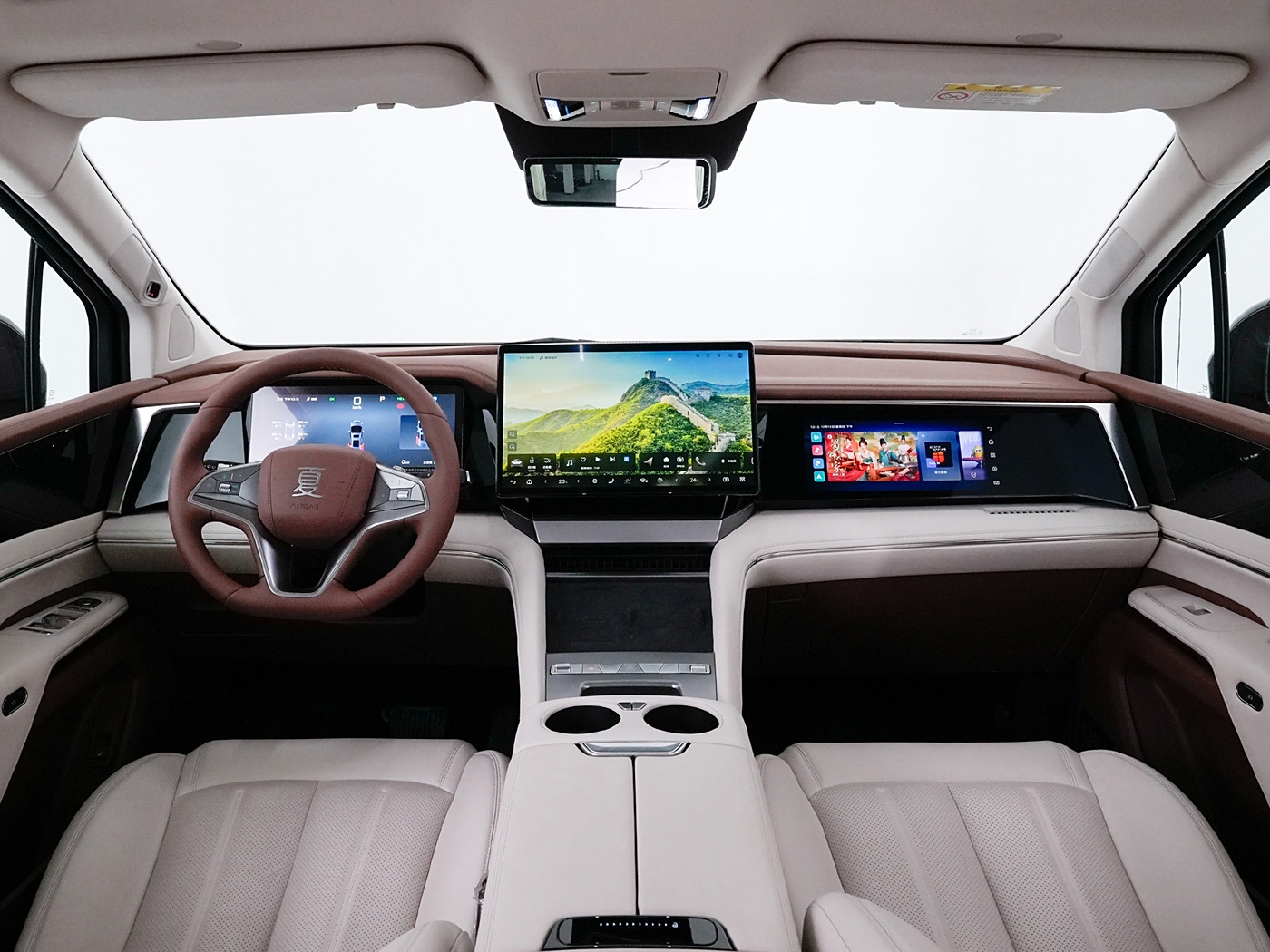Nội thất của BYD Xia gần như tương đồng với Tengshi D9, với thiết kế "ba màn hình" liền mạch. Vật liệu và chất lượng hoàn thiện được đánh giá cao, mang đến cảm giác sang trọng và đầy ắp công nghệ. Khu vực điều khiển trung tâm không có cần số truyền thống mà sử dụng cần số điện tử đặt trên vô lăng. Bảng điều khiển trung tâm được thiết kế hai tầng, tầng dưới là khoang chứa đồ rộng rãi, tầng trên bao gồm đế sạc điện thoại không dây, giá để cốc và các ngăn chứa đồ nhỏ.