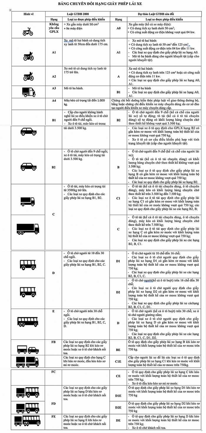 Còn đối với người được cấp GPLX mới hoặc cấp đổi GPLX sẽ được phân chia lại theo hạng GPLX mới. Ông Thống khẳng định: “Việc điều chỉnh phân hạng GPLX không ảnh hưởng và phát sinh thủ tục và chi phí cho người dân”.