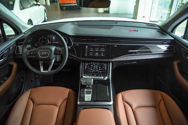 Nội thất Q7 có nhiều điểm tương đồng với Q8 từng được bán tại Việt Nam trước đây. Hệ thống giải trí đa thông tin trung tâm là 2 màn hình cảm ứng MMI kích thước 8,6 inch và 10,1 inch. Xe cũng có 7 chỗ ngồi.